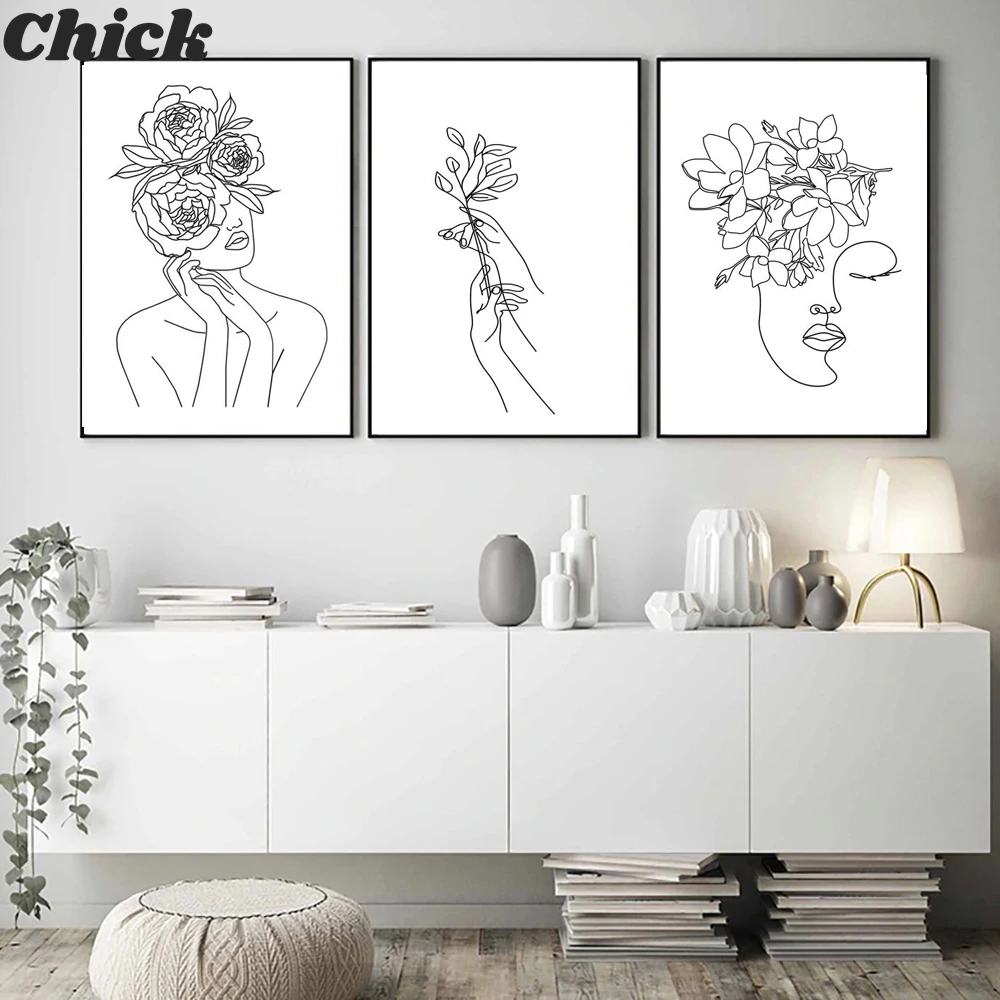Настенный художественный Рисунок, рисунок для девочек, минималистичный Простой Модный плакат, женский цветочный лист, эскиз тела, черная белая Картина на холсте