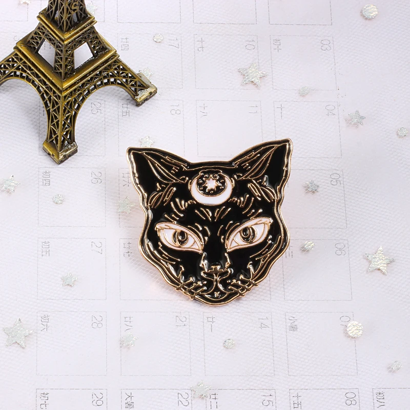 Значок с эмалью ведьмы кошки, Лунная фаза, звезда, готический черный кот, заколка на лацкан, джинсы, рубашки, джинсы, рюкзак, пряжка, значок, темно-черное ювелирное изделие в стиле панк