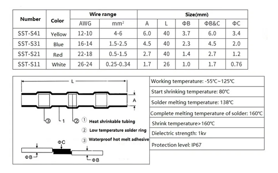 Термоусадочные соединители для проводов, водонепроницаемые, 5010020...