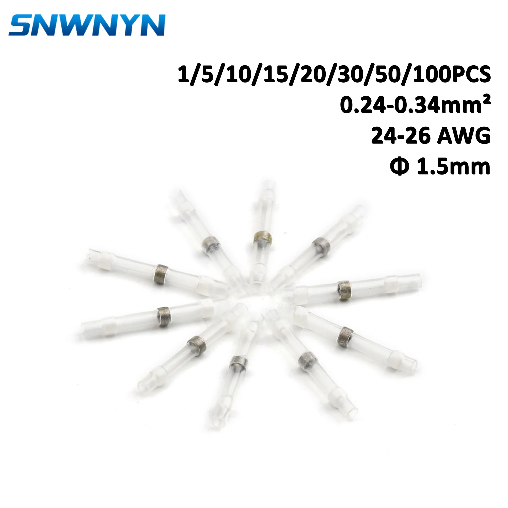 Термоусадочные стыковые клеммы, водонепроницаемые, электрические, белые, без давления, соединители проводов AWG26-24 0,25-0, 34 мм