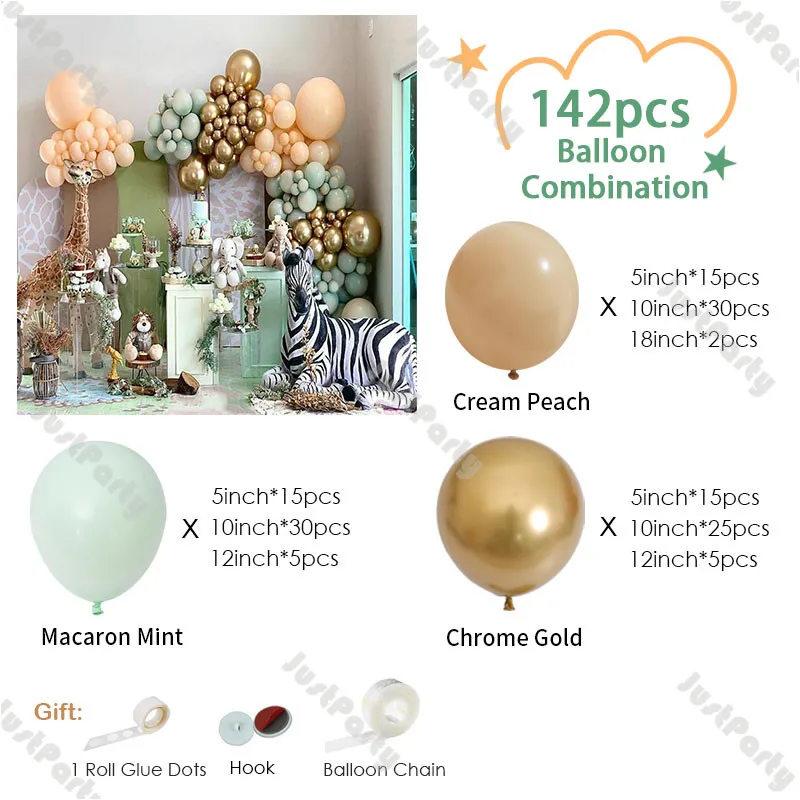 142pcs Кисть для румян телесного цвета шар комплект гирлянды Свадебные украшения мятно-зеленого цвета, хром крем с золотом персик воздушные шары Арка вечерние Baby Shower Декор
