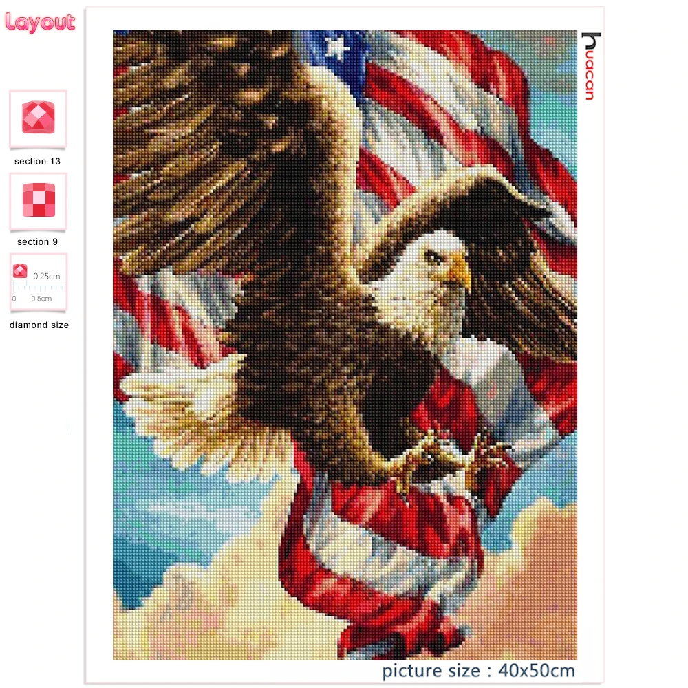 Huacan Diy алмазная живопись Американский флаг с орлом Вышивка крестом мозаика животные домашний Декор стены Стикеры