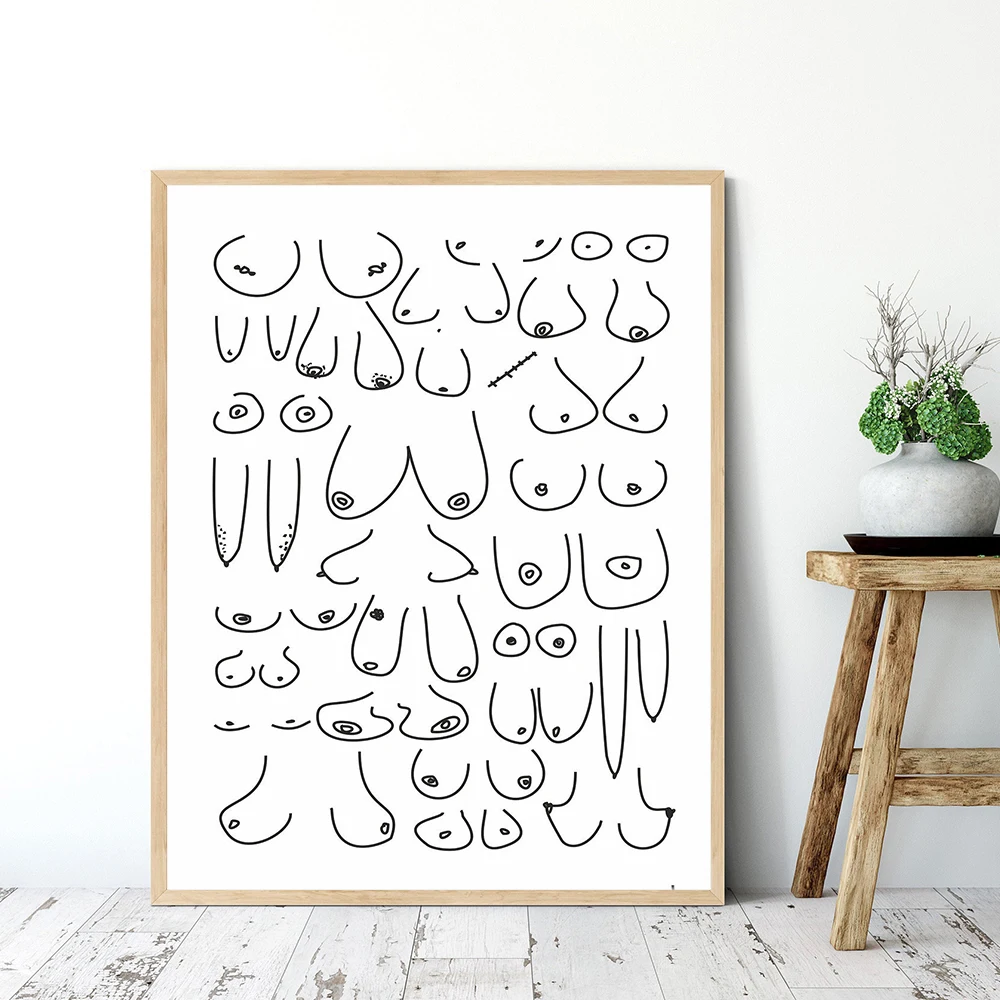 Забавные настенные художественные постеры С сиськами, рисунок, минимализм, Картина на холсте для гостиной, постеры и принты, настенные картины