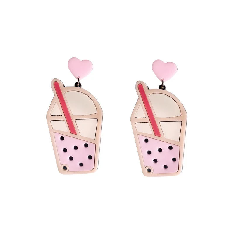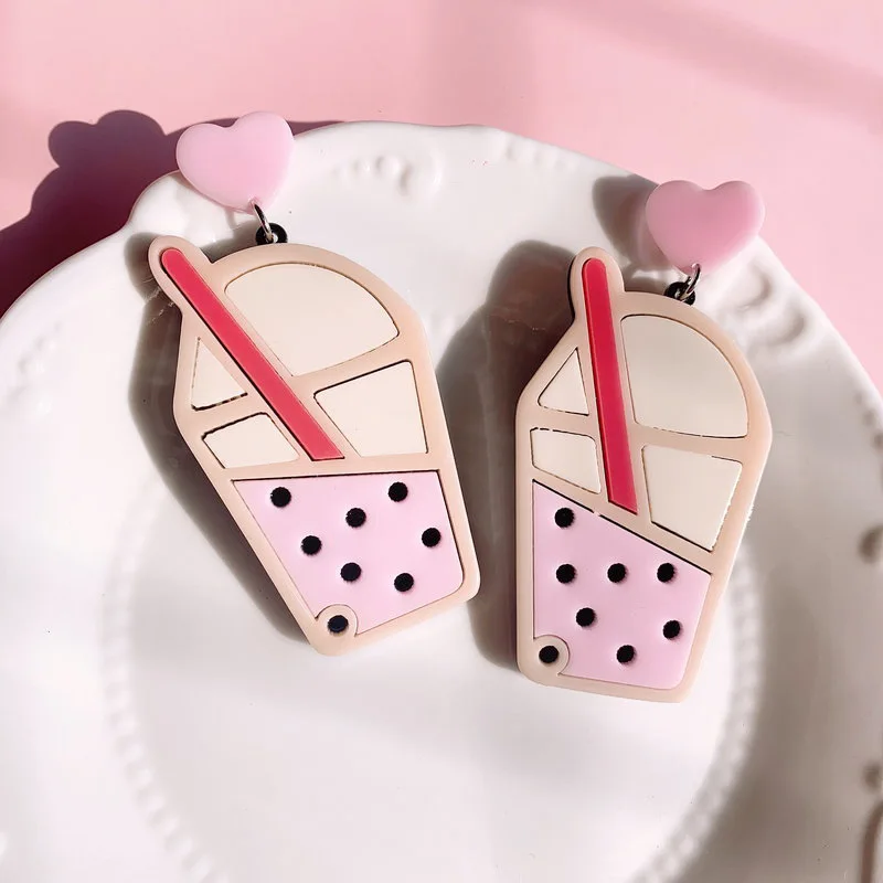 Креативное милое розового цвета в стиле Bubble Tea акриловые серьги для женщин модная одежда для девочек в форме сердца, хорошие украшения моделирование питьевой Серьги Brincos в виде