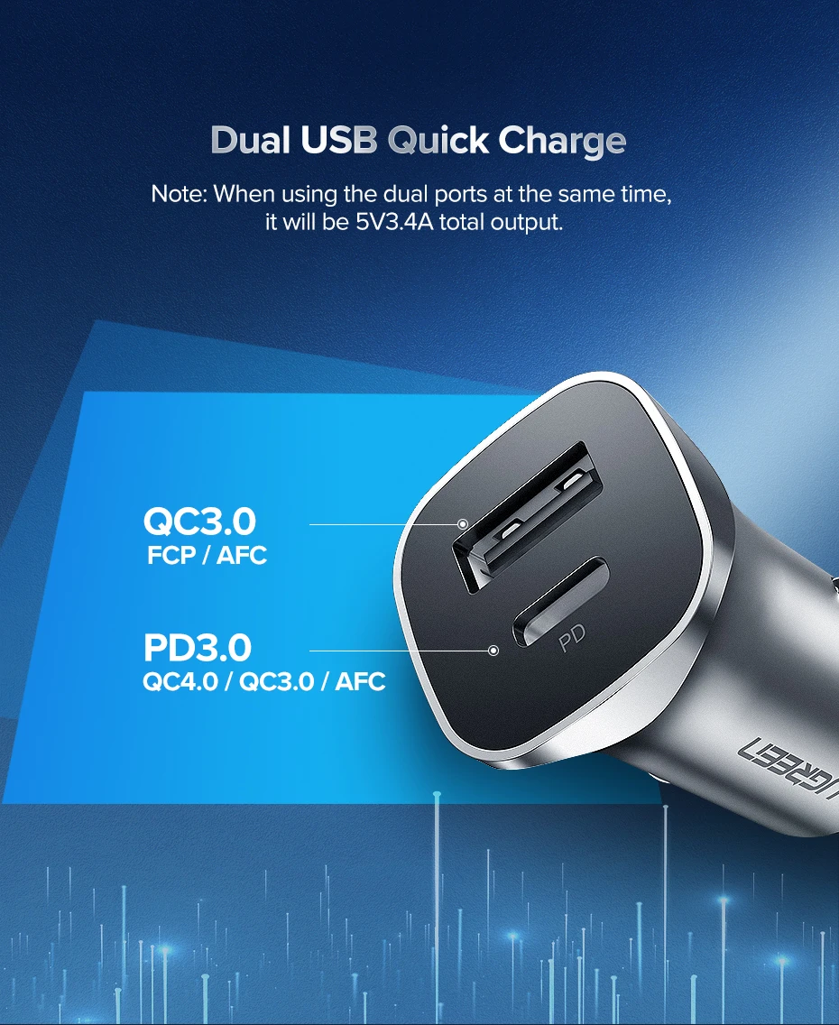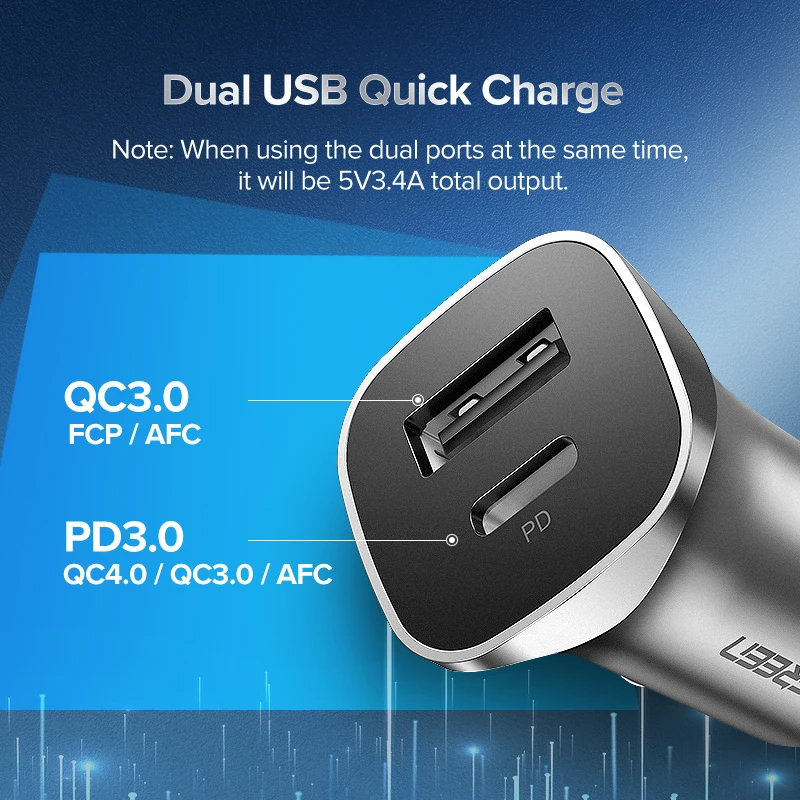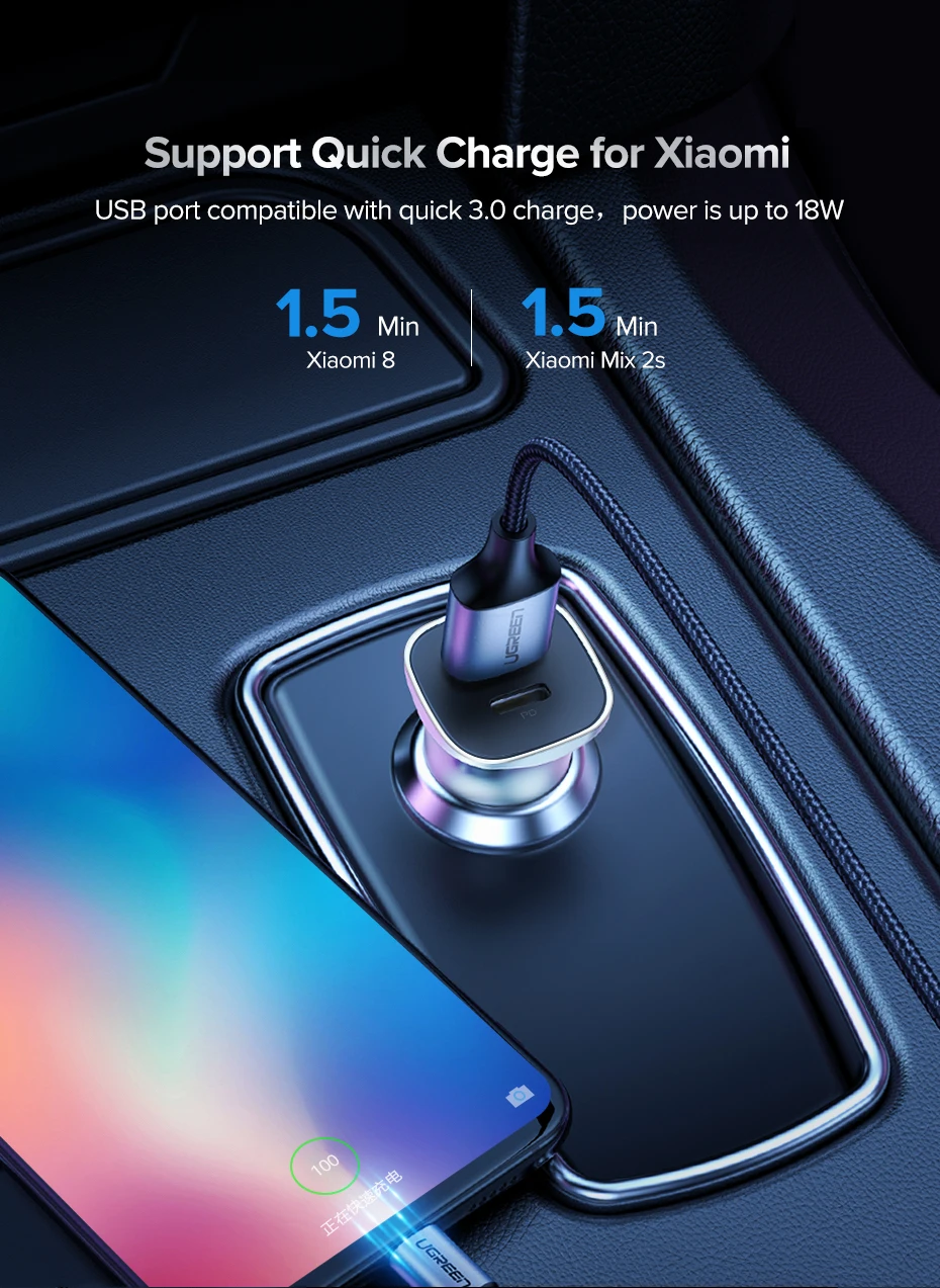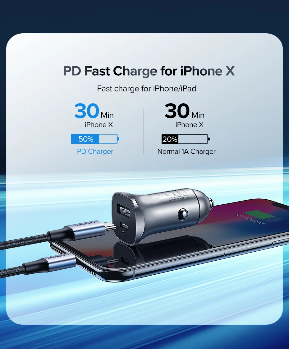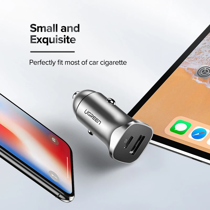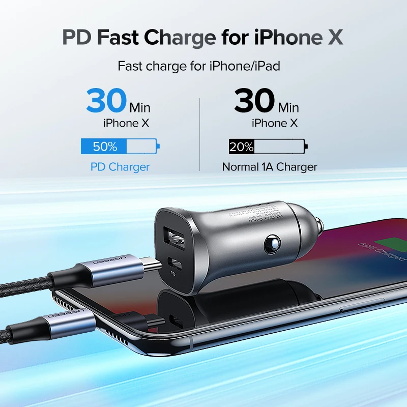 Автомобильное зарядное устройство UGREEN PD 20 Вт, USB Type C, быстрая зарядка 4,0, 3,0, QC, для iPhone 13, 12, 11, Samsung мобильный телефон, автомобильное зарядное устройство