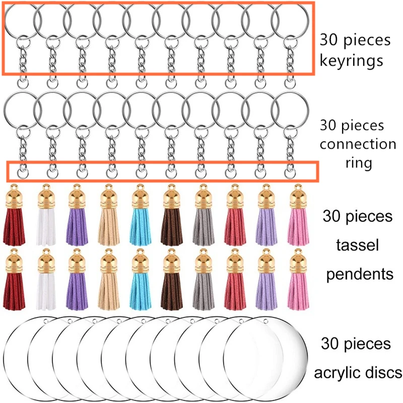 200 шт. набор заготовок для брелоков из акрила с кольцами для ключе...