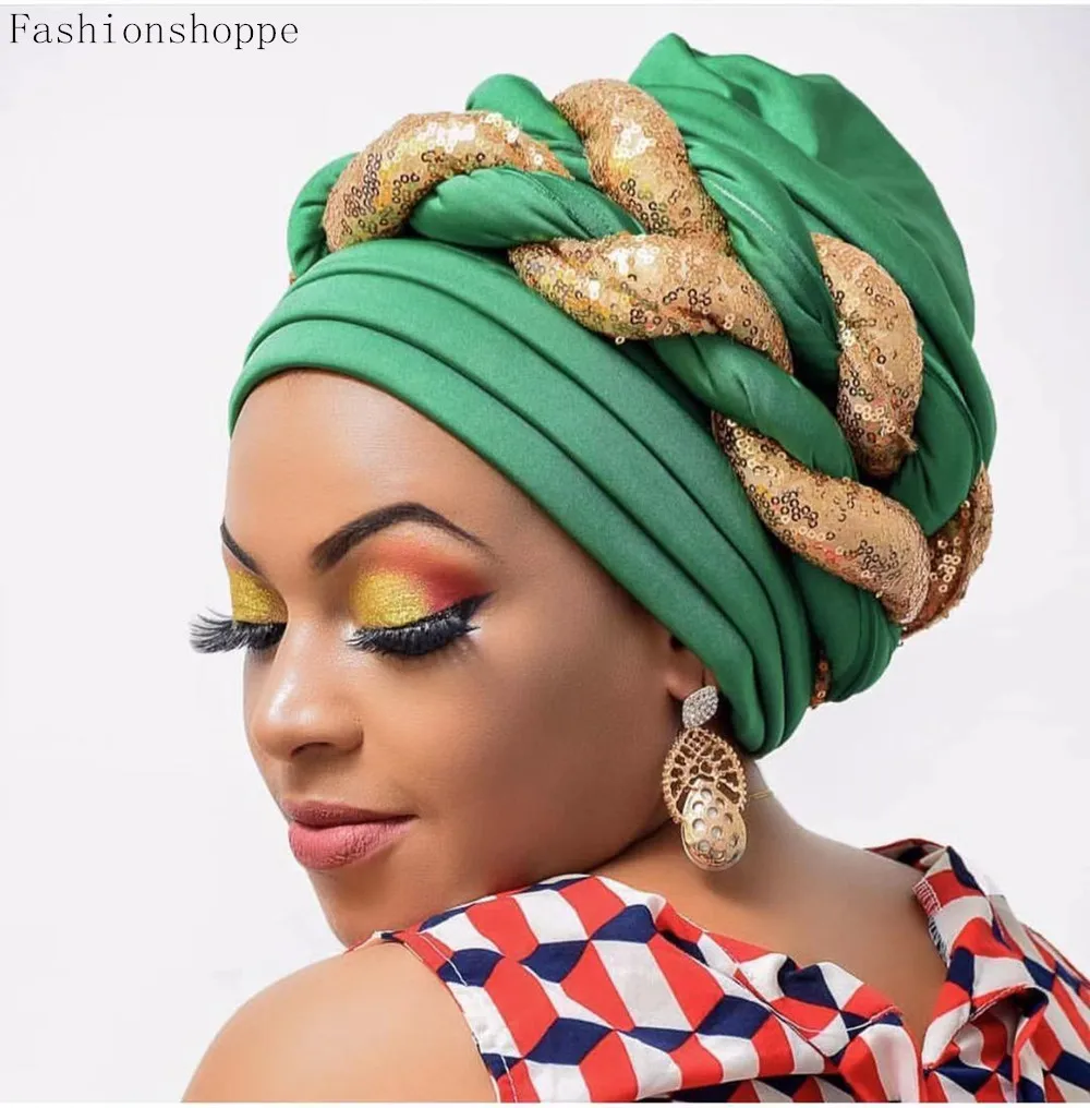 Новинка, тюрбан с блестящими пайетками для женщин, готовые женские головные повязки, африканские автоповязки Aso Oke, головные повязки, готовые головные повязки