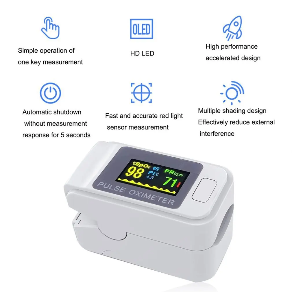 Особенности:1. Маленький и светильник: измерение одной кнопкой простой модный внешний вид, Круглый контроль уровня кислорода в крови в любое время и в любом месте.2. Высокая производительность: более высокая точность, с использованием импортных чипов и технологии оптического обнаружения, измерение является более точным.3. Силиконовая пальчиковая мембрана: более удобная в носке, сочетающая мягкость силикона с эргономикой, форма для пальцев, один ключ, хорошая посадка.4. Четыре направления дисплея: более четкое чтение гуманизированного дизайна деталей, различные жесты, различные направления, можно точно прочитать.5. Автоматическое выключение: больше экономии энергии. Автоматически обнаруживает положение пальца, без пальца автоматически отключается через 8 секунд энергосбережение, длительное время работы в режиме ожидания.Описание:Пальчиковый оксиметр подходит для всех возрастов, от детей до пожилых людей. В домах, больницах и социальных медицинских институтах, вы можете использовать это устройство для измерения данных о состоянии здоровья.Характеристики:Режим питания: сухая батареяМодель: SO911Применимые части: рукиМатериал: Высокопрочный АБС-пластикЦвет: белыйПосылка включает в себя:1 комплект * оксиметрПримечания:1. Допускается погрешность в 0-1 дюйм из-за ручного измерения. Спасибо за понимание.2. Мониторы не калибруются так же, цвет товара, отображаемый на фотографиях, может немного отличаться от реального объекта.