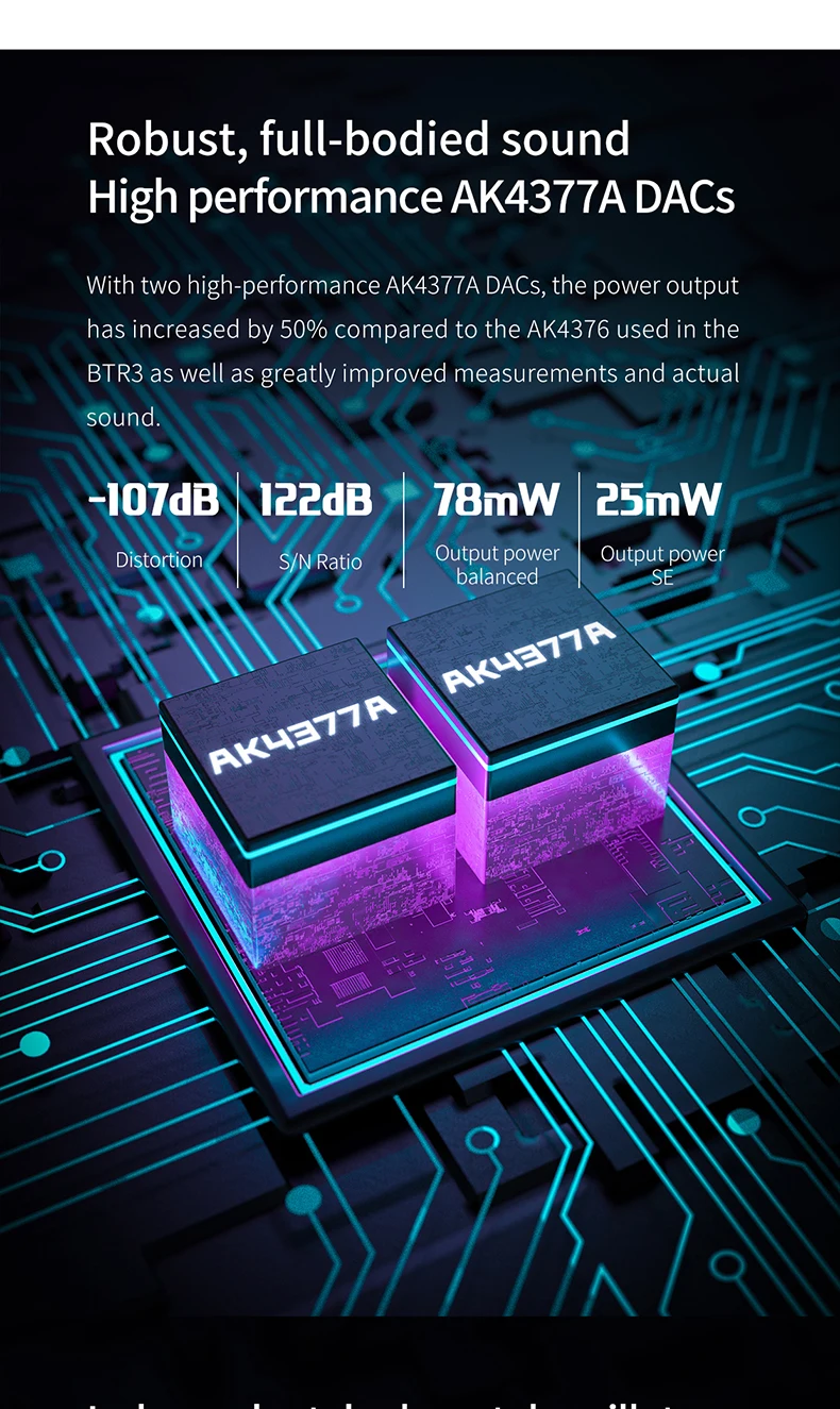 -Невероятное увеличение производительности-Теперь с балансным выходом SE-Надежный, насыщенный звук, высокопроизводительные цапы AK4377A-Независимые Двойные Кварцевые генераторы для точного воспроизведения звука-адаптируется к различным видам проводных наушников-Qualcomm CSR8675 возможности Bluetooth флагманского уровня-Быстрый и удобный регулятор громкости-Регулируется независимо от громкости телефона