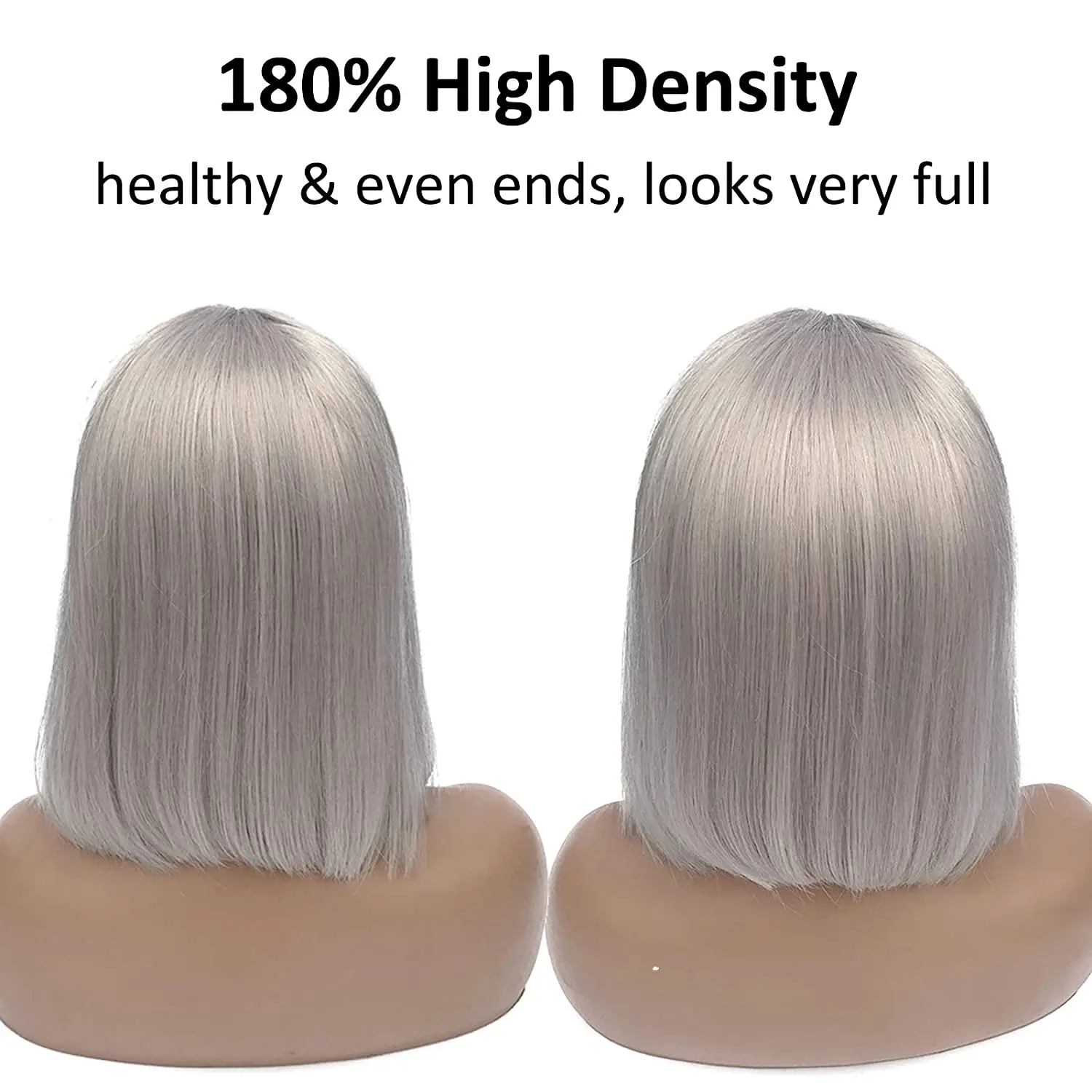 Grey Machine Made Bob WigGrey Short Blunt Cut Bob Wigs