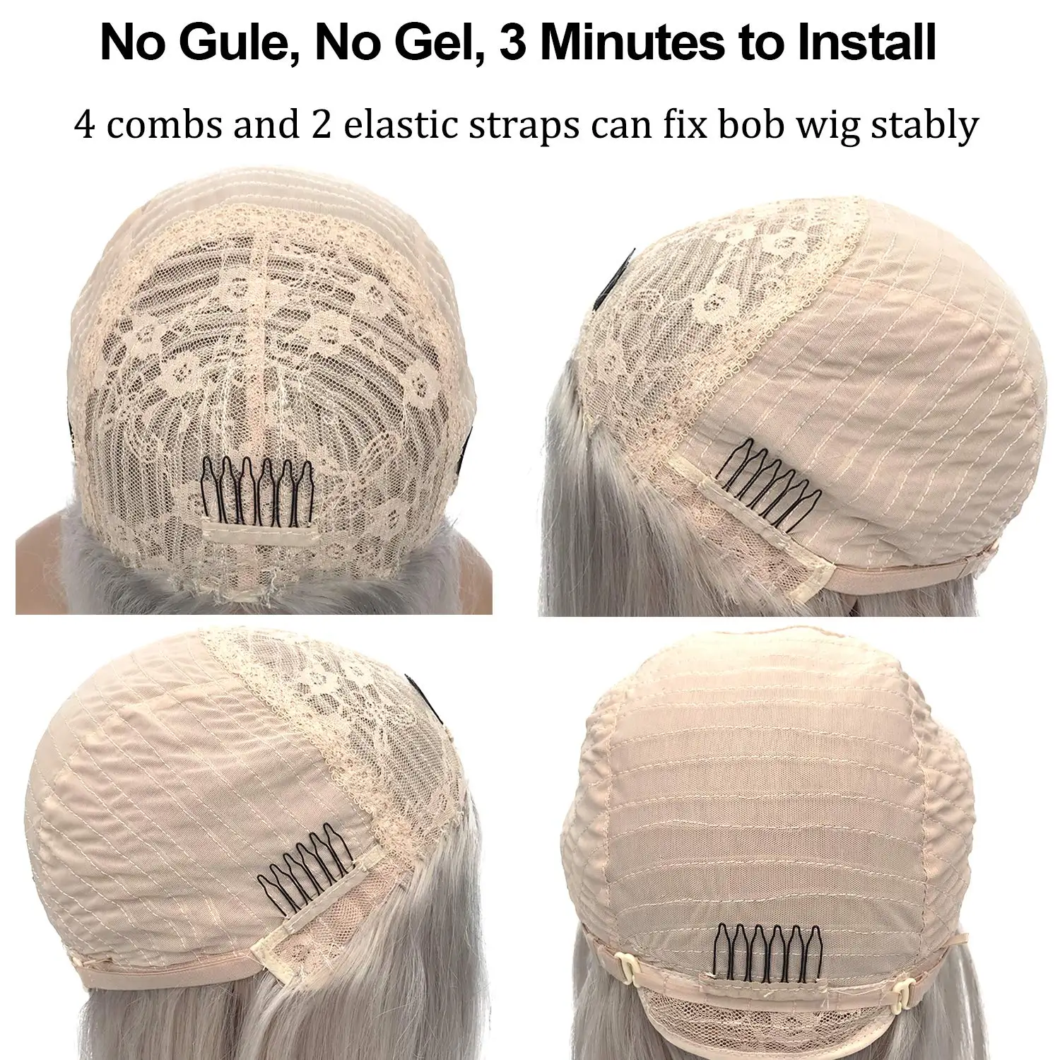 Grey No Lace Front Bob WigGrey Middle Part Bob Wigs