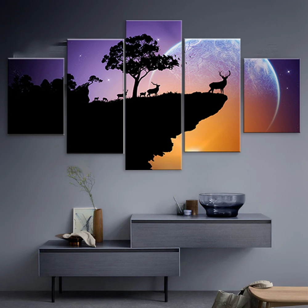 Картина на холсте сильный гудок Коричневый Олень в лесу 5 шт. Настенная картина модульные обои плакат печать домашний декор