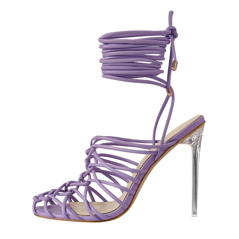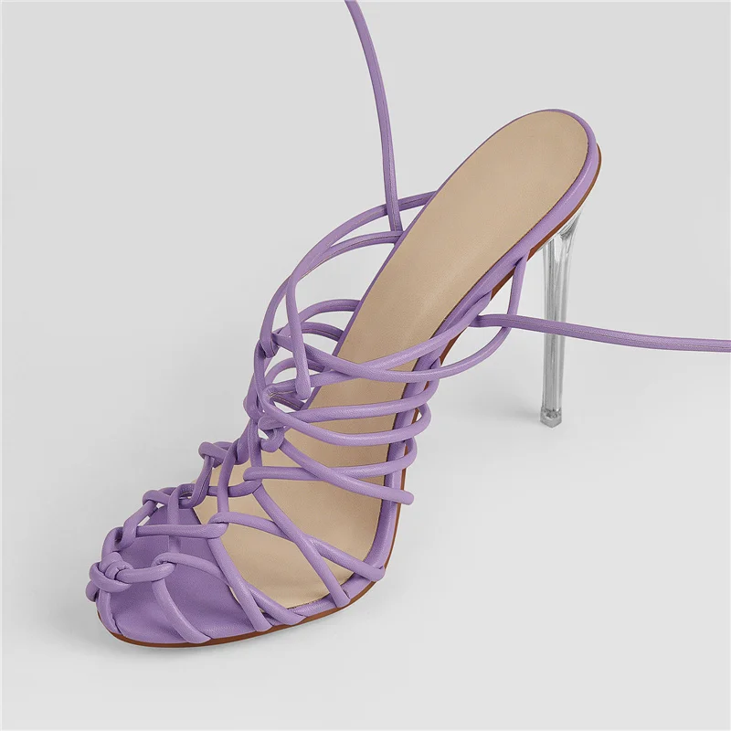 Сандалии Richealnana, летние, романтичные, фиолетовые, с перекрещивающимися полосками, туфли на высоком каблуке с ремешком на щиколотке металлические, прозрачные, стиллетос, для вечевечерние, выпускного вечера