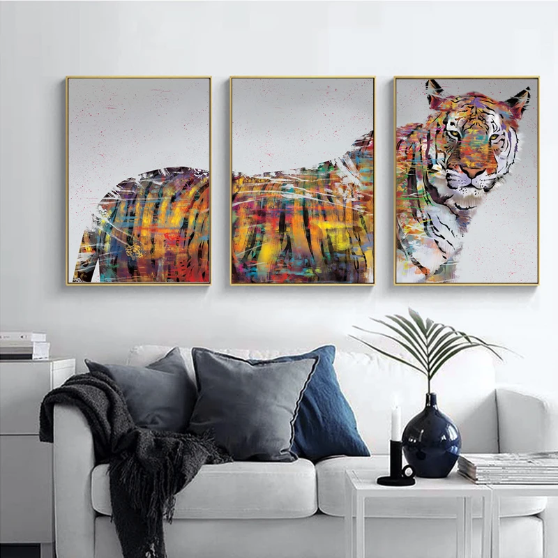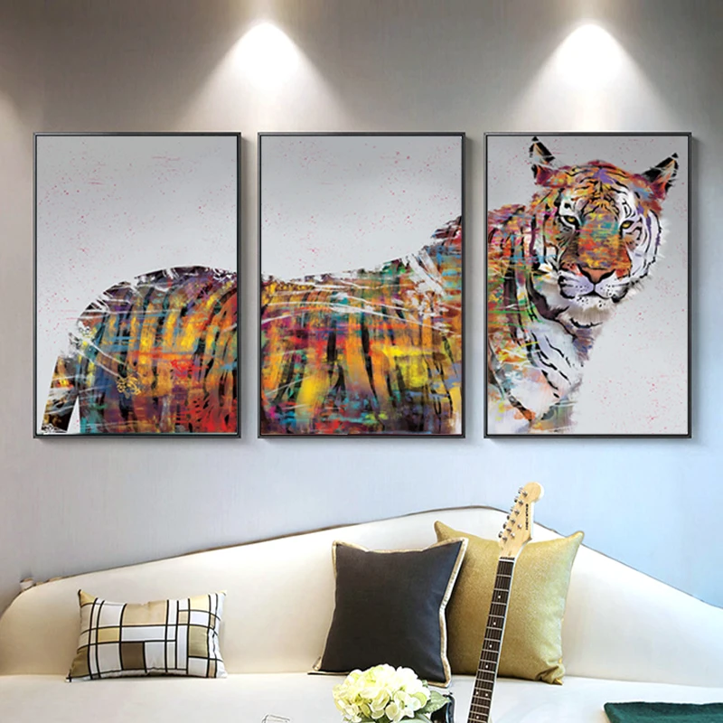 Аахх животное картина холст картины украшение на стену, живопись маслом Тигр, комплект из 3 предметов, плакатов и печати для Гостиная для домашнего декора без рамки