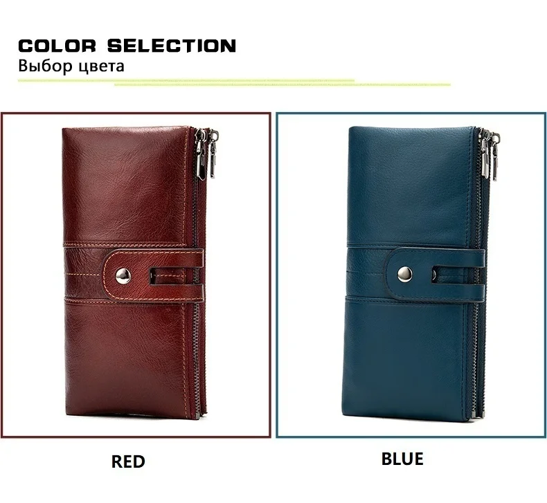 Женский кошелек из воловьей кожи на молнии, большой вместимости, с ...