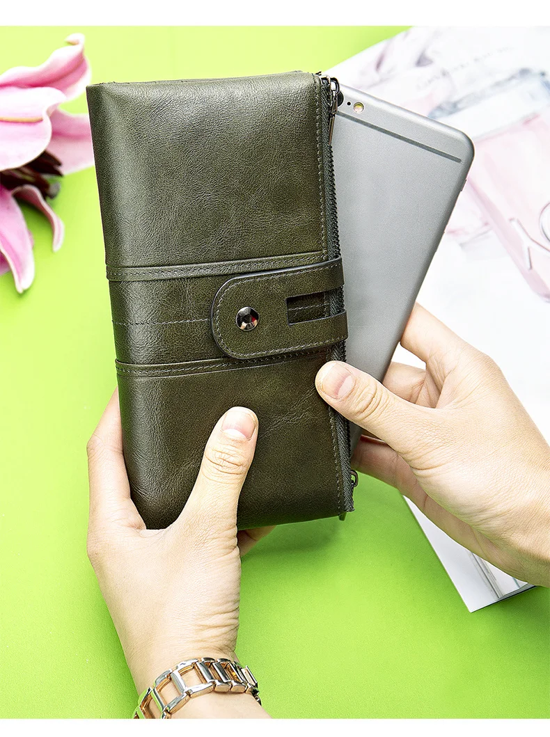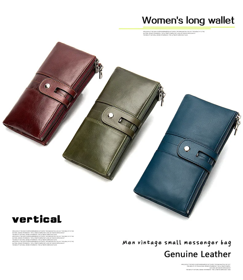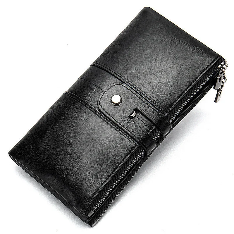Длинный кошелек из натуральной кожи для мужчин и женщин, бумажник на молнии, кошелек для мелочи, сумочка для телефона с RFID-защитой, женский клатч, кошельки