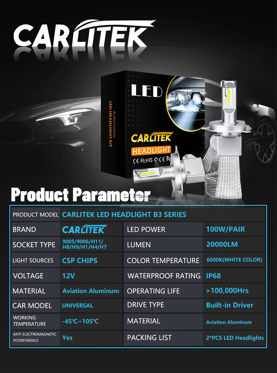 CARLITEK 9005 9006 Светодиодная лампа для авто HB4 HB3 безвентилято...