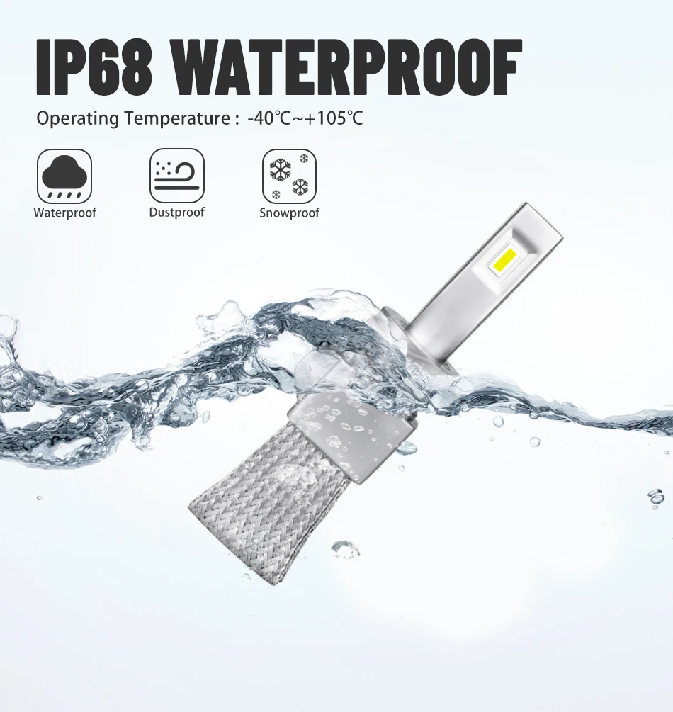 Светодиодные лампы H1 для автомобиля, 6000 лм, без вентилятора, 900...