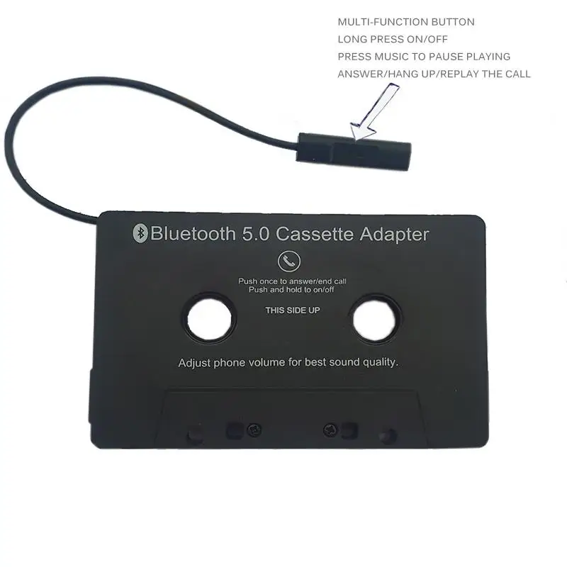 Кассетный адаптер с технологией Bluetooth 5,0 может удобно воспроизводить музыку на вашем смартфоне с помощью подключения по Bluetooth.