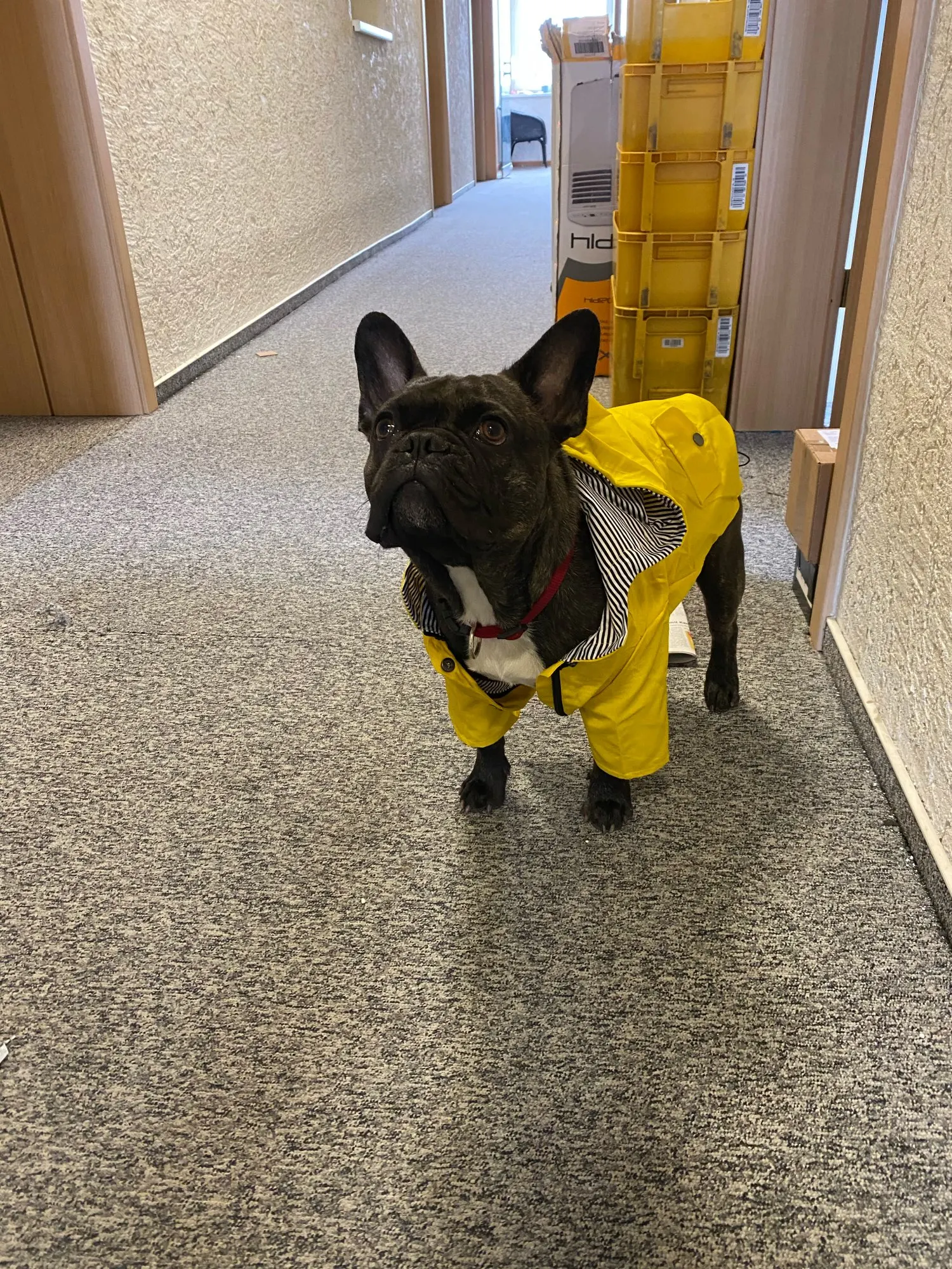 Отличный плащик, на французского бульдога 20 кг село хорошо.