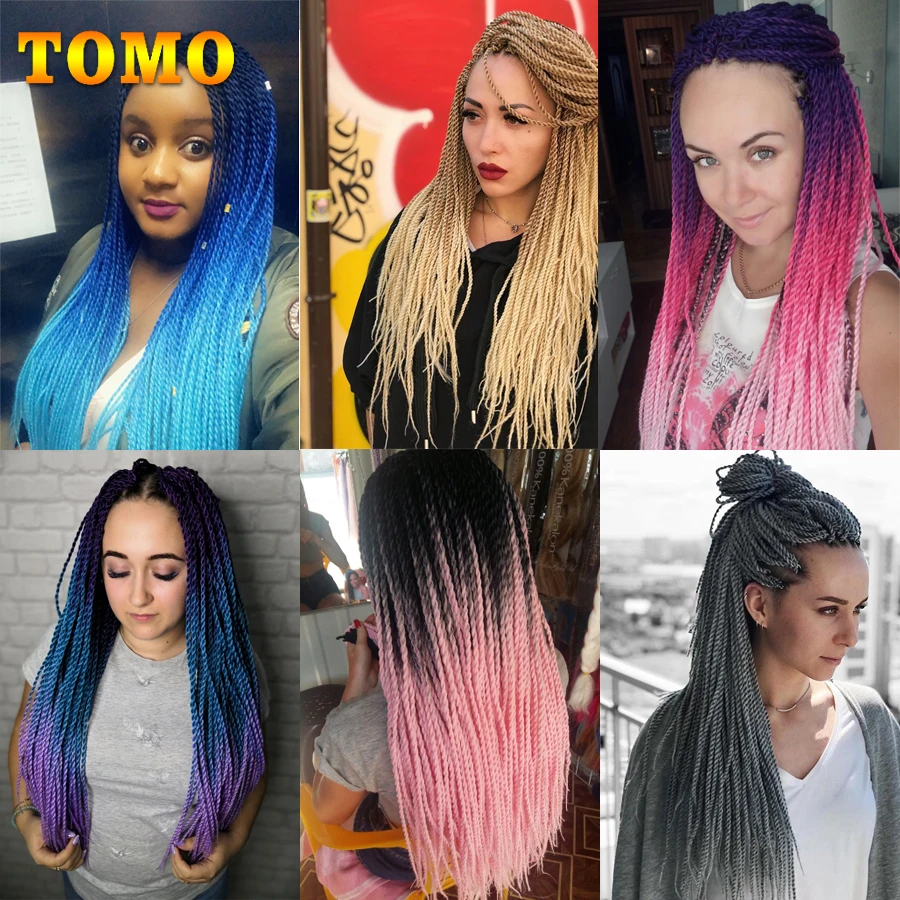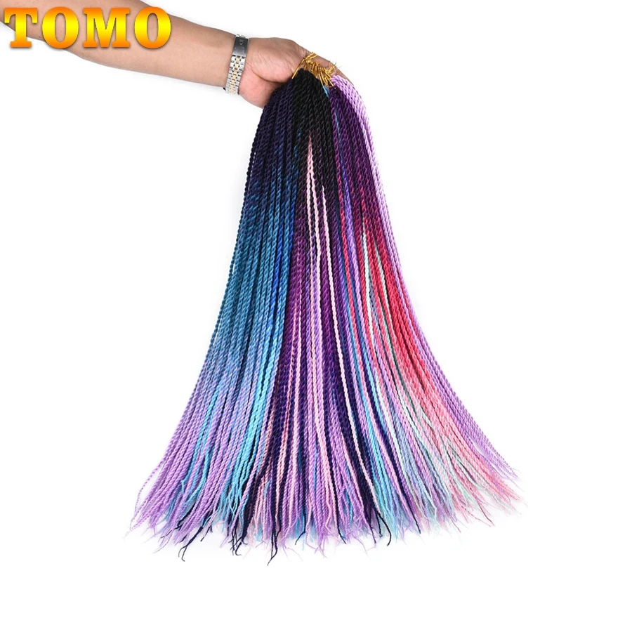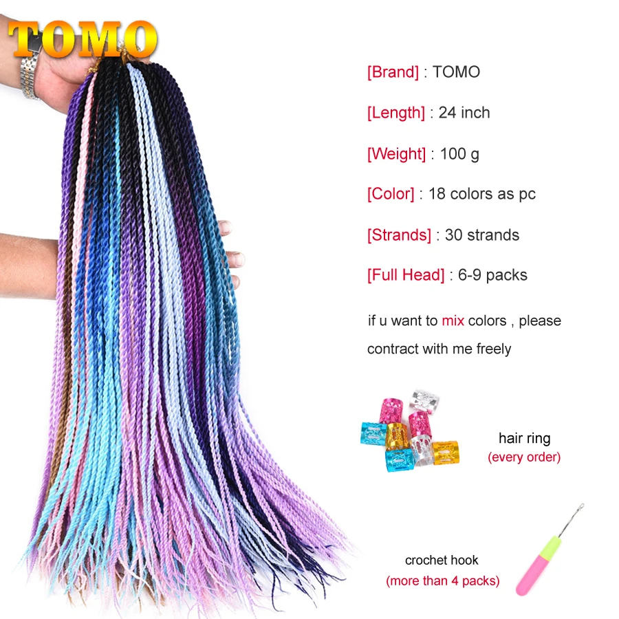 TOMO, Сенегальские закрученные синтетические волосы косы с крючком для волос 24 дюйма 30 корней эффектом деграде (переход от темного к три тона плетеные волосы для наращивания чёрный; коричневый Цвет