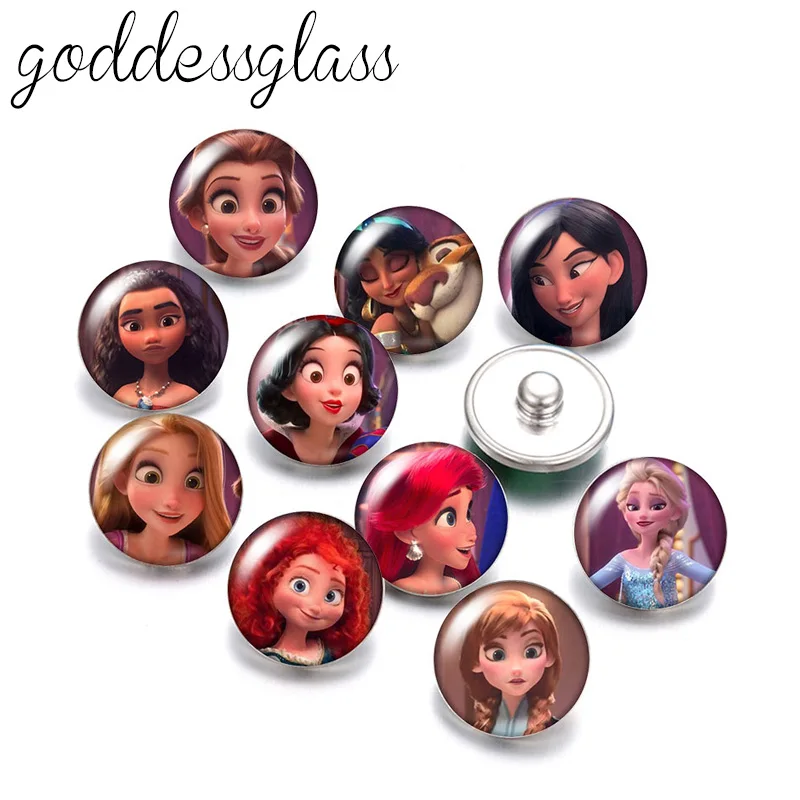 Disney принцессы Белль с Эльзой и Анной Жасмин Белоснежка 10 шт. Круглый Фото 18 мм кнопки для 18 мм Оснастки ожерелье, сделай сам, ювелирное изделие
