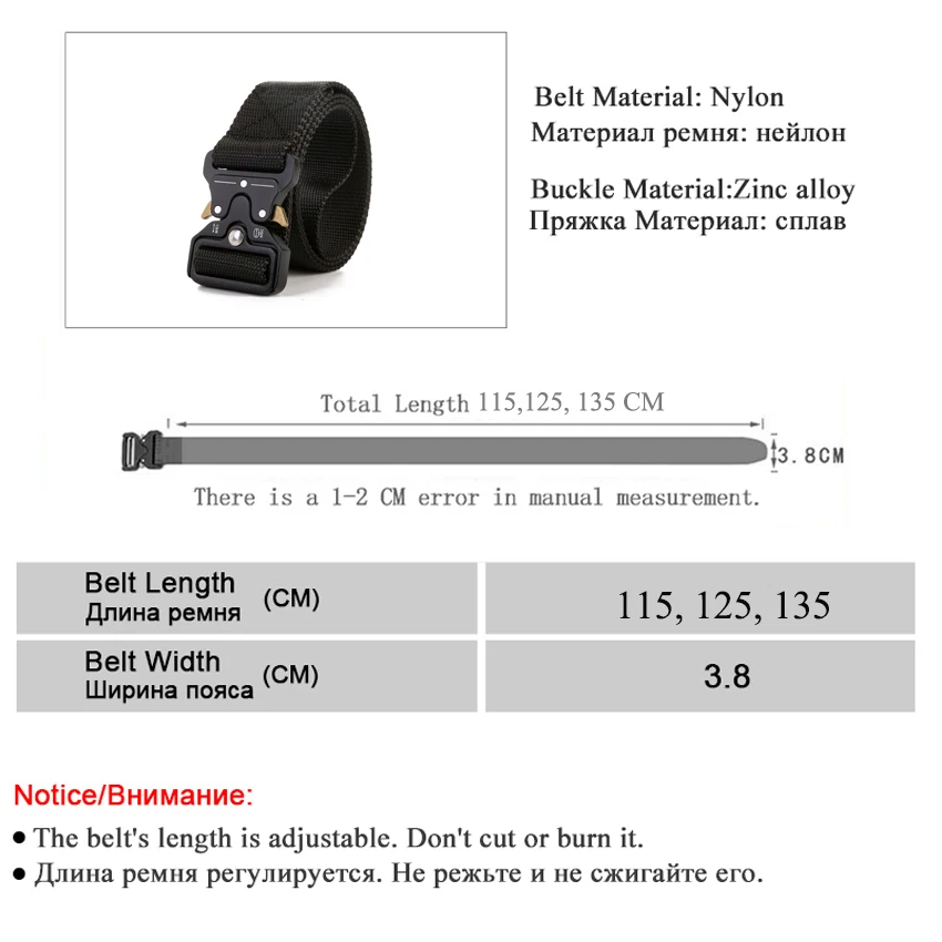 Ремень нейлоновый мужской, длинный Регулируемый быстросъемный такти...
