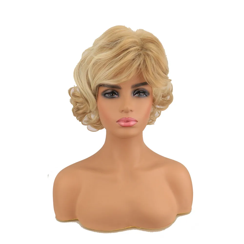 Чудесные W синтетические волнистые Короткие Смешанные светлые парики вьющиеся Многослойные повседневные волосы для женщин Косплей вечевечерние термостойкий парик