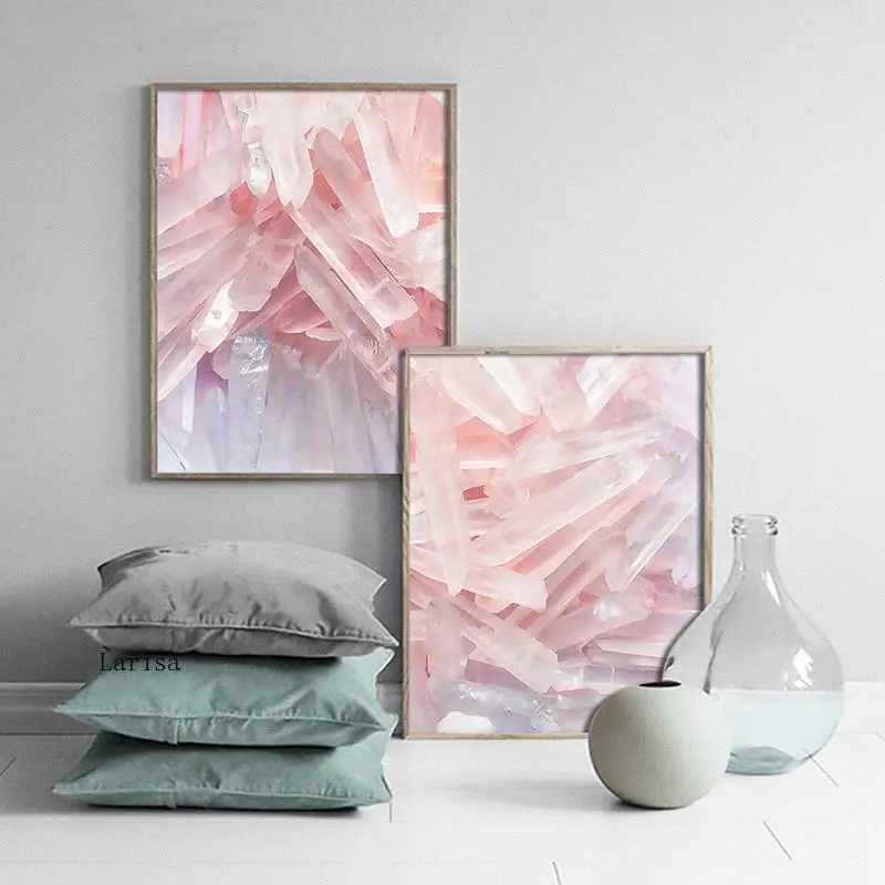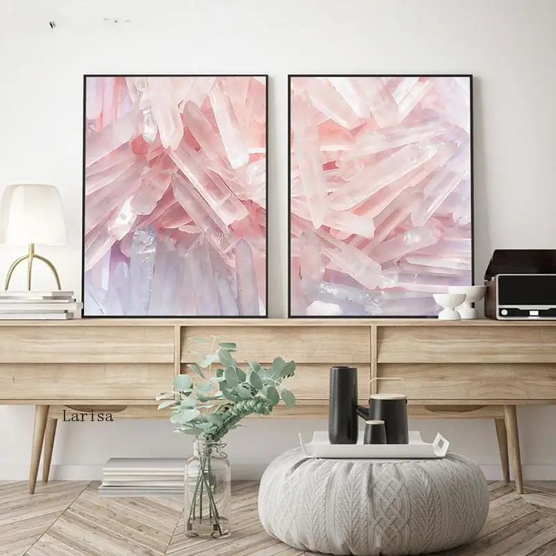 Скандинавская абстрактная картина маслом из кристаллов и мрамора, настенное искусство, холст, розовый, синий, пастельный кварц, модный постер, комнатный декор, настенная роспись