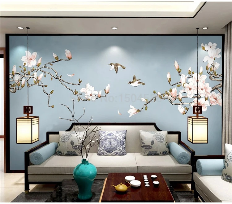 Настенные обои на заказ в китайском стиле ручная роспись 3D цветок магнолии и птица для гостиной фон для телевизора настенное украшение живопись