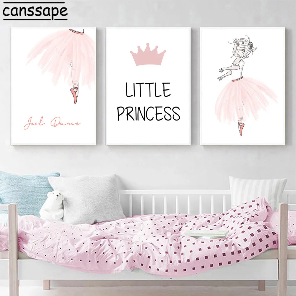 Детская стена искусства холст картины балерина Плакат Звезда картина с Луной Принцесса Корона принт танцора декор комнаты для маленьких девочек