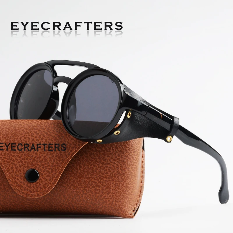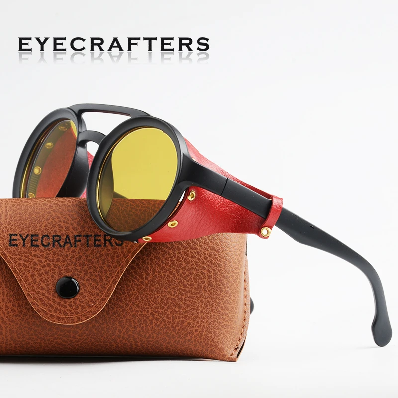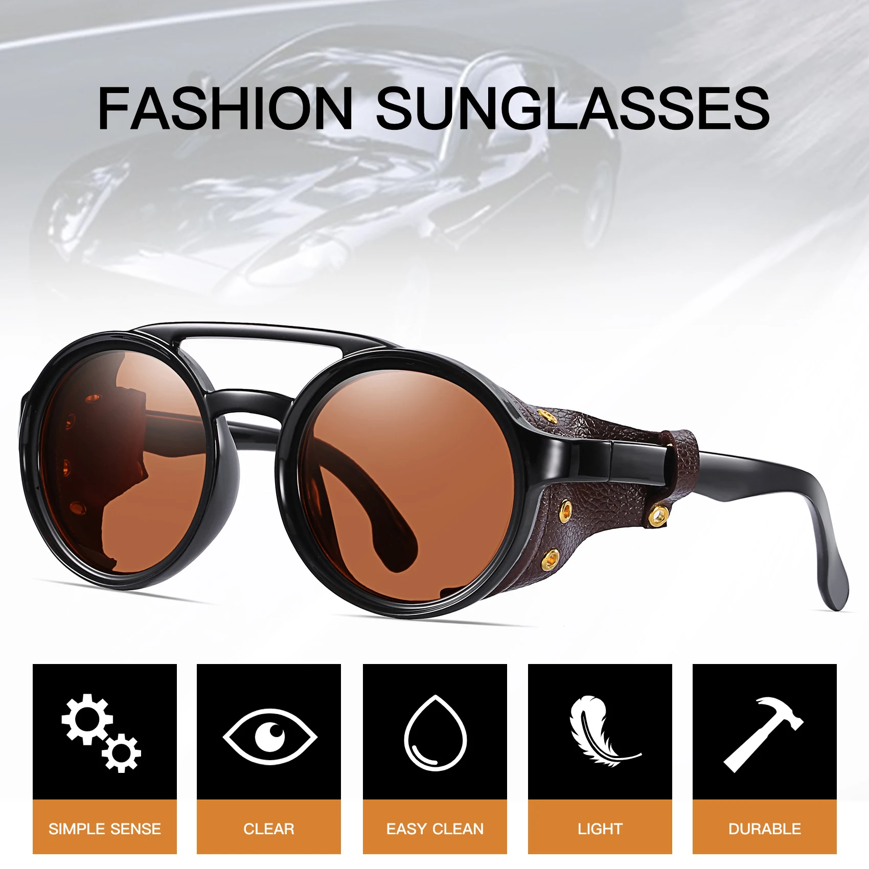 Новинка 2021, мужские металлические готические солнцезащитные очки в стиле стимпанк, женские ретро модные кожаные солнцезащитные очки с боковыми оттенками, круглые солнцезащитные очки