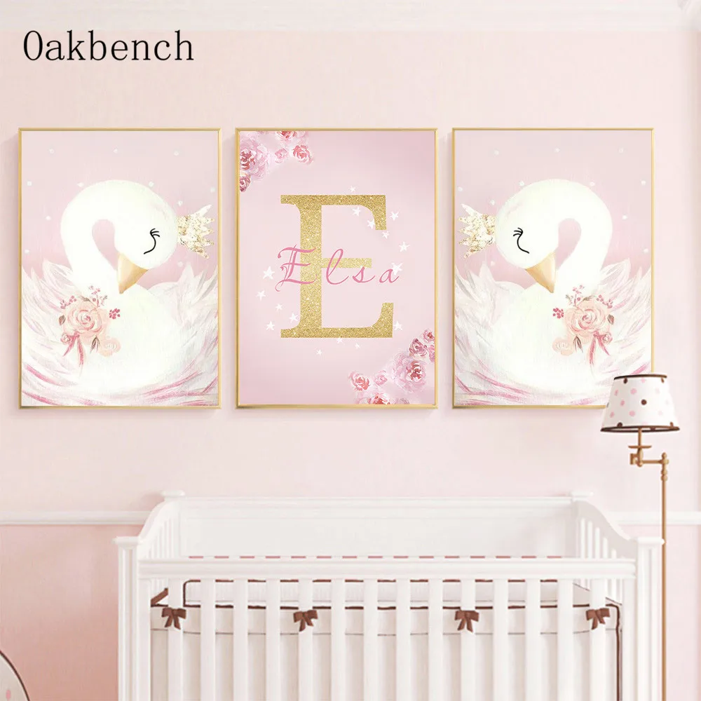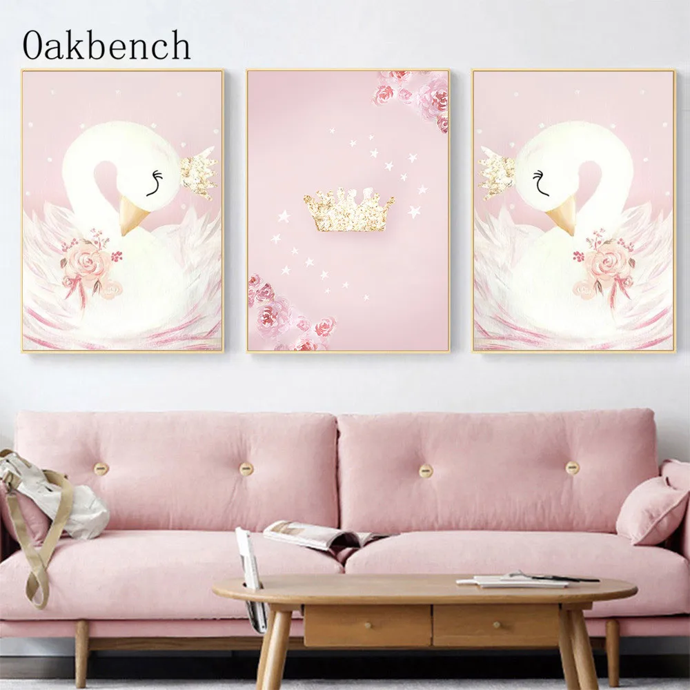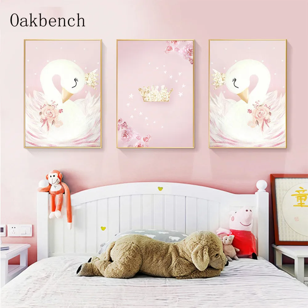 Настенные плакаты с изображением животных, постеры с изображением лебедя и цветов на холсте, настенные картины в скандинавском стиле для украшения комнаты для маленьких девочек