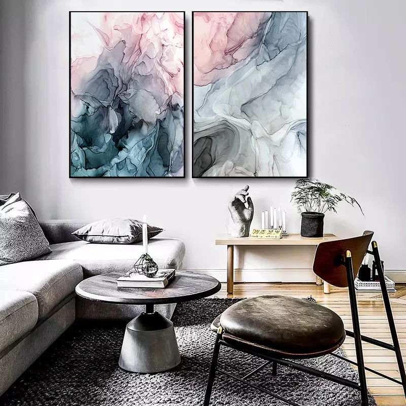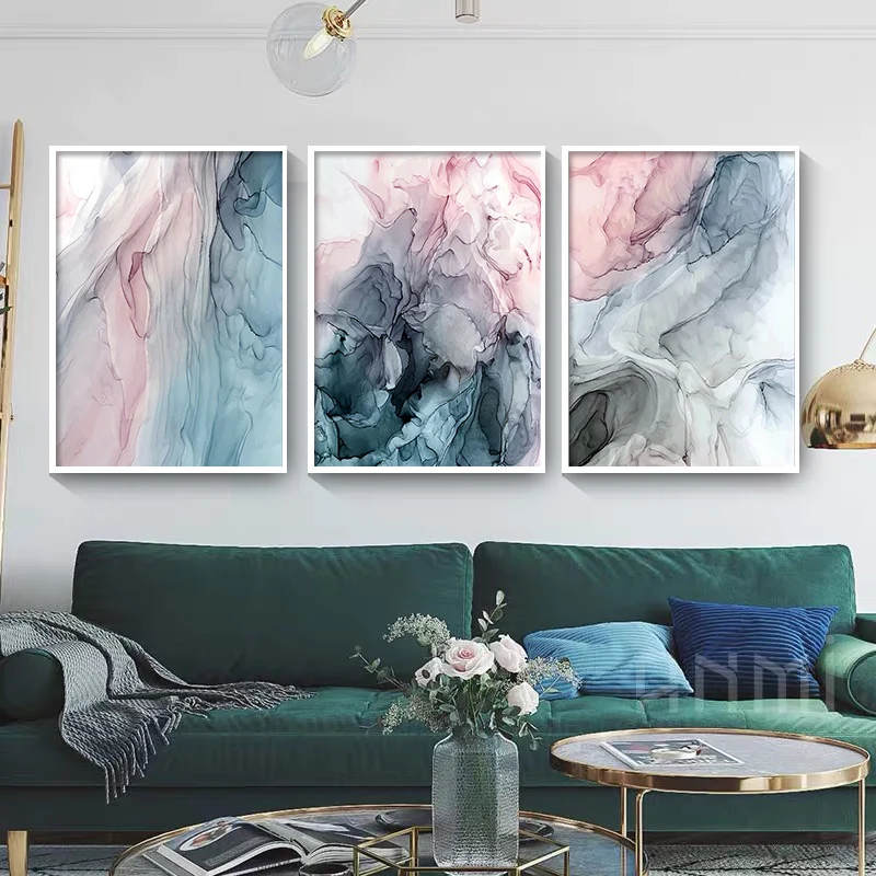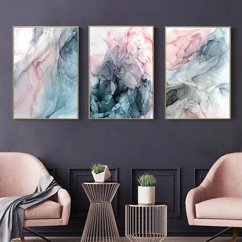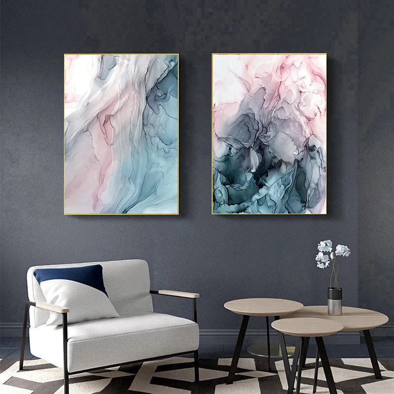 Абстрактная Картина на холсте с розовыми чернилами, пейзаж, скандин...
