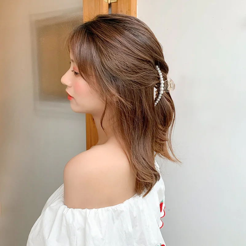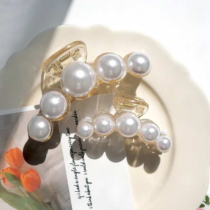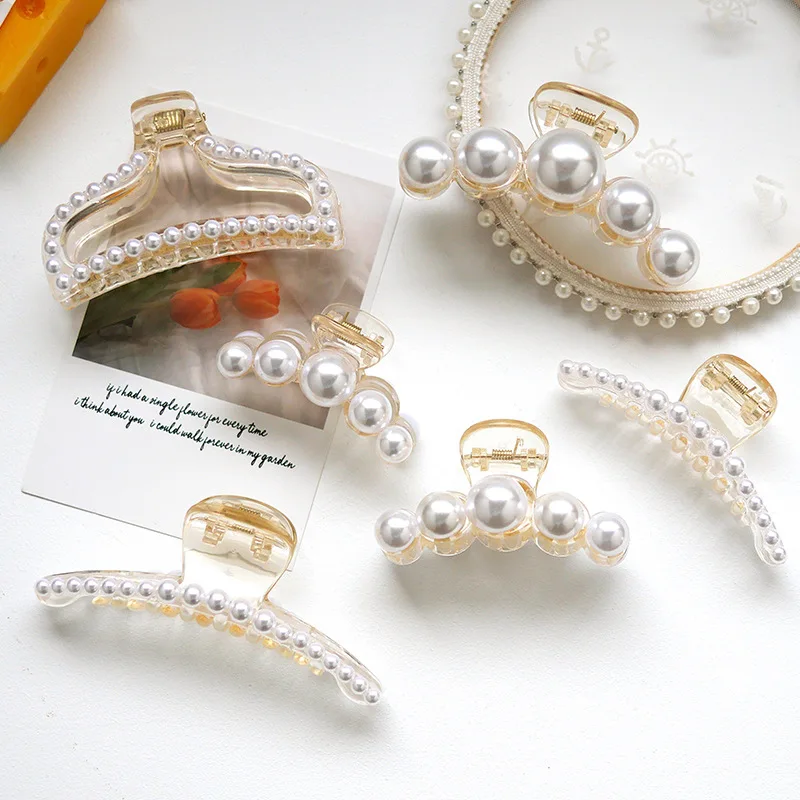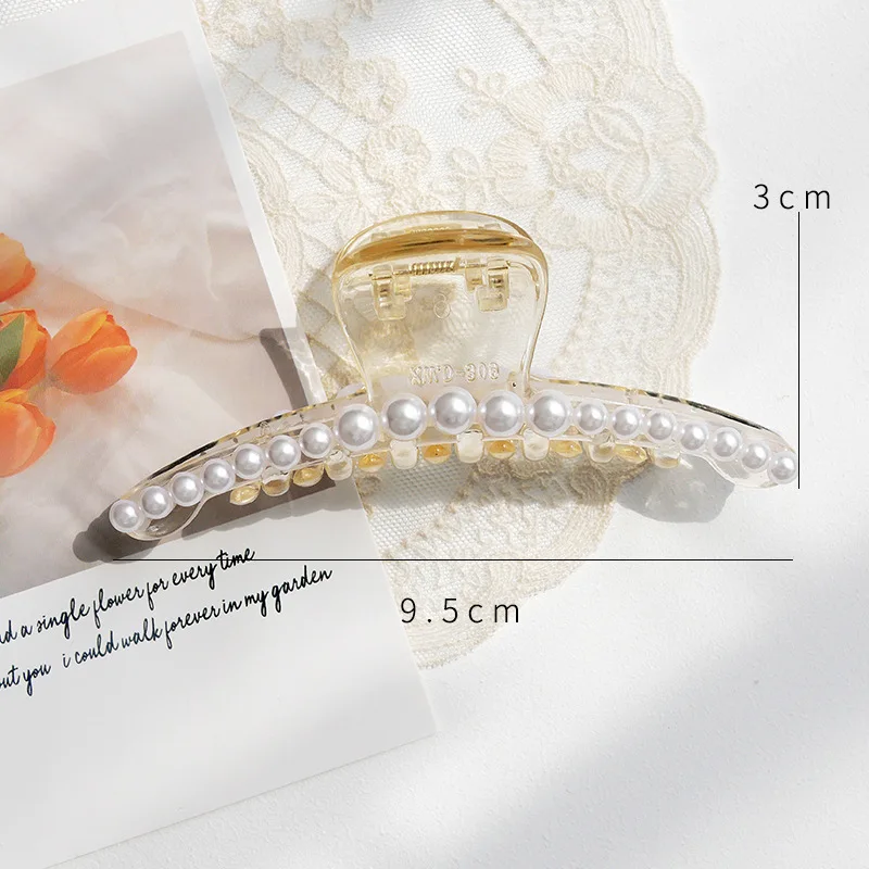 Заколка для волос с жемчугом женская, элегантный большой зажим для ...