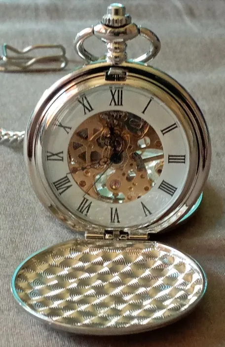 Часы карманные механические, серебристые, с двойной откидной крышкой и римскими цифрами