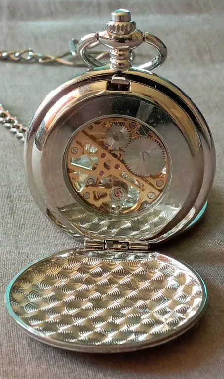 стимпанк часы мужские серебряные гладкие кварцевые карманные часы М...