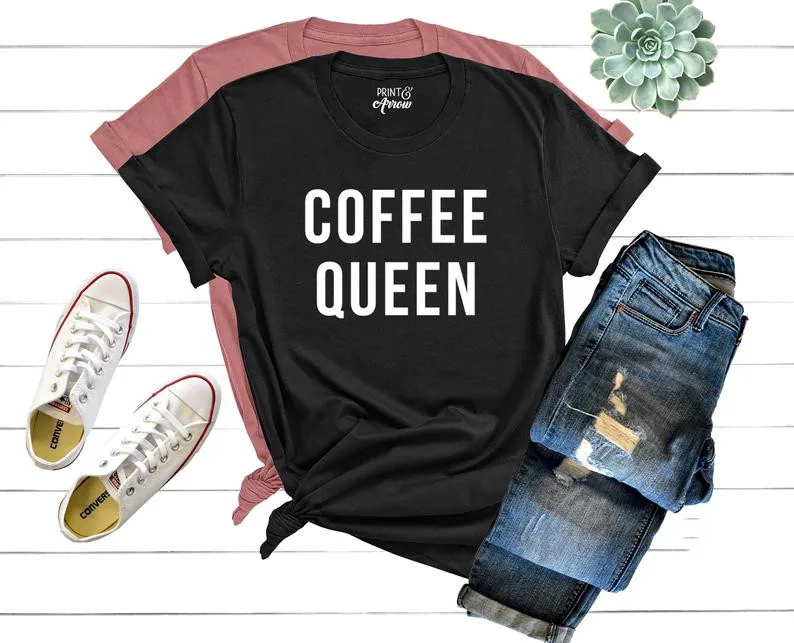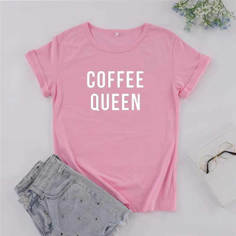 Рождественский подарок для подруги, кофейная королева, рубашка, Женский Топ из 100% хлопка с коротким рукавом, с буквенным принтом, с круглым вырезом, для мамы