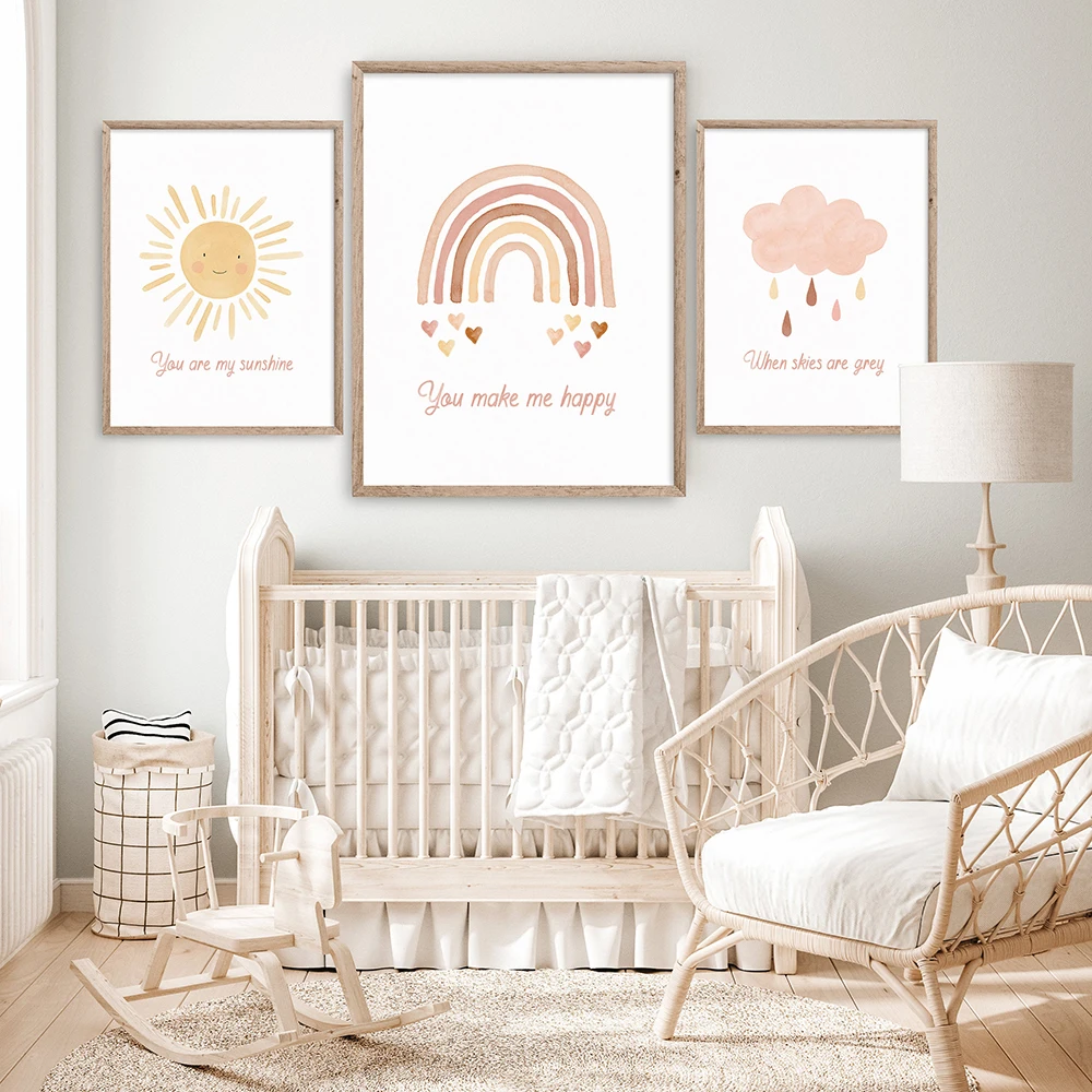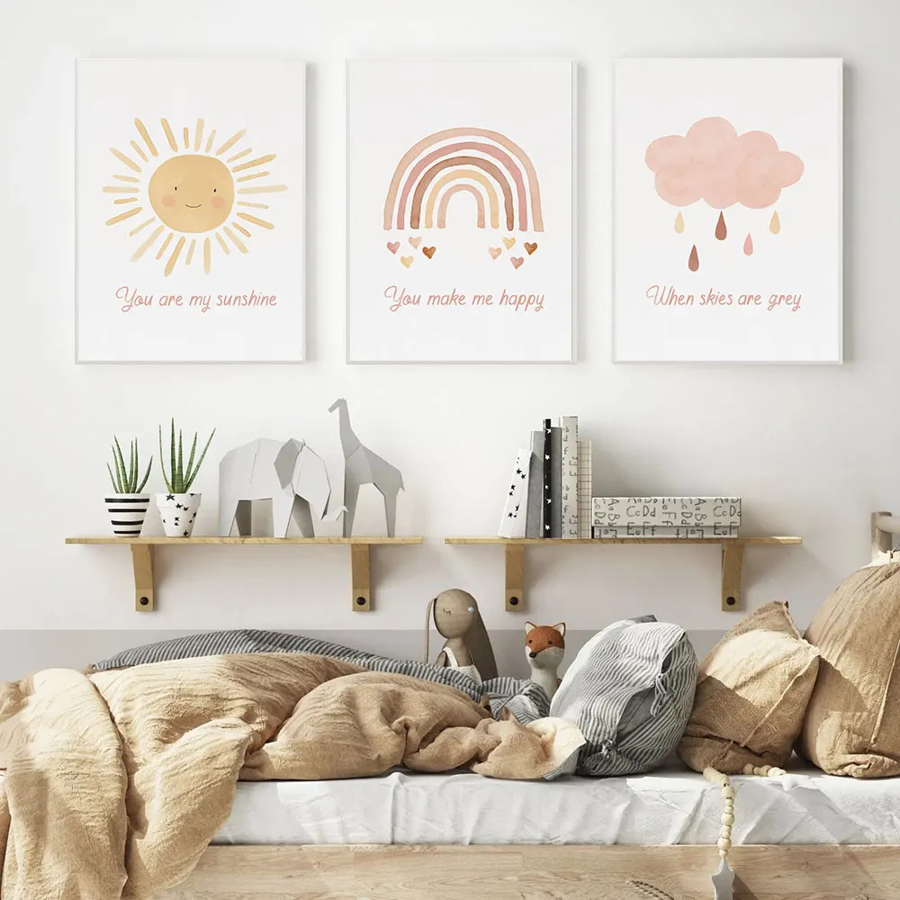 Мультяшные радужные Детские цитаты, детский постер, настенная Печать на холсте, Минималистичная Настенная картина, нордическая детская комната, домашний декор