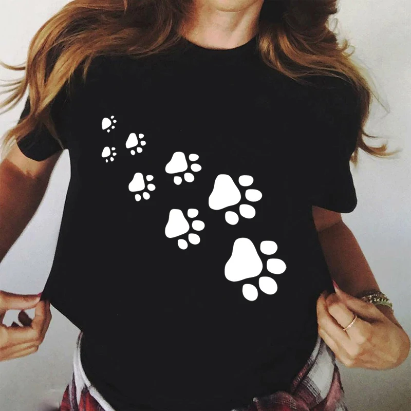 Женская футболка с рисунком собачьей лапы, Повседневная модная одежда с коротким рукавом, футболка с графическим принтом, женская футболка с принтом