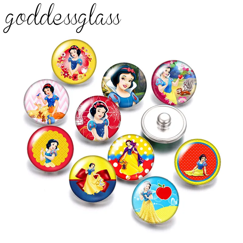 Disney чехлы-накладки "Принцесса", "Белоснежка", "подарок для девочек 10 шт. Круглый Фото 18 мм кнопки для 18 мм Оснастки ожерелье, сделай сам, ювелирное изделие