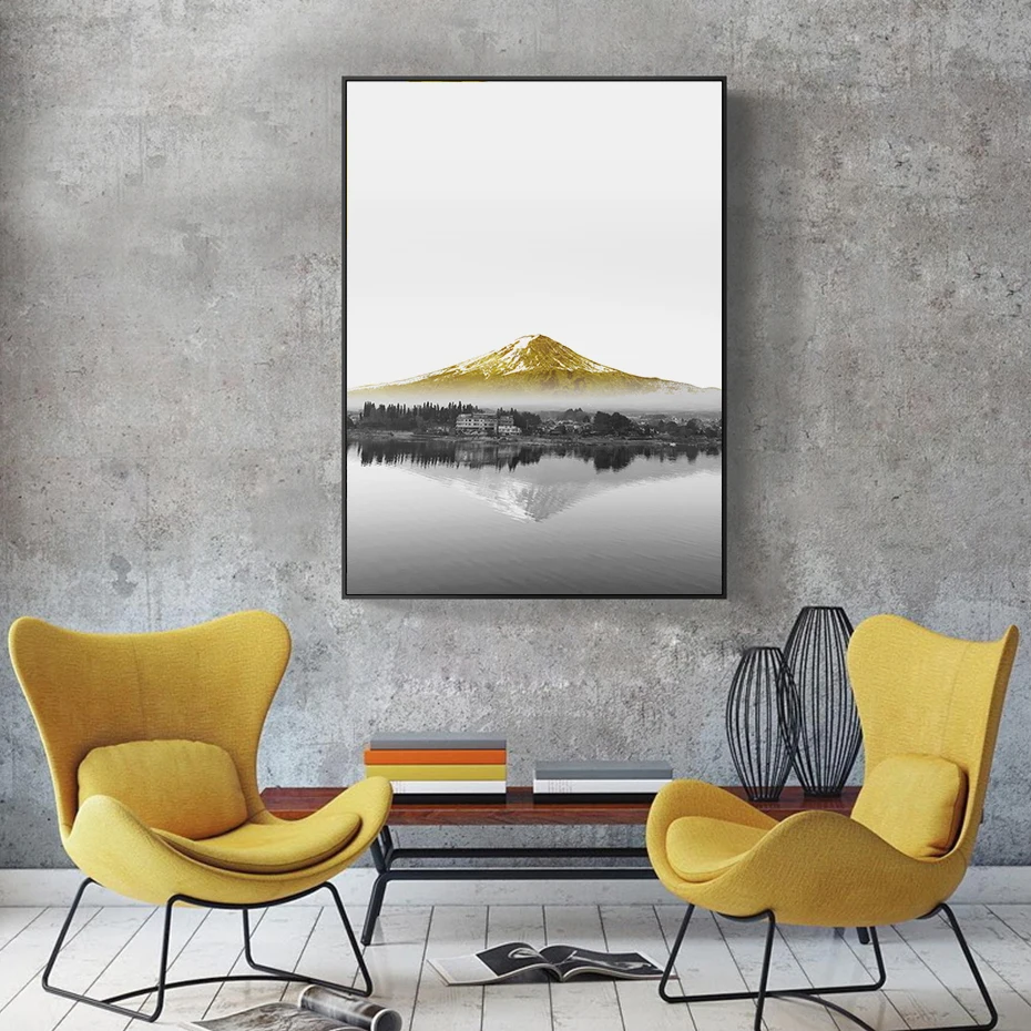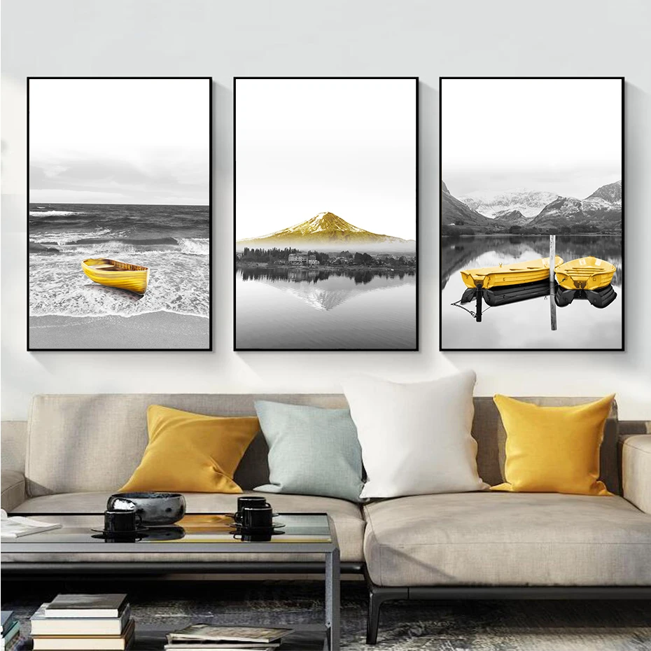 Картина на холсте, с изображением желтой лодки на озере, горного пейзажа, для гостиной, интерьера дома, картина, печатный плакат