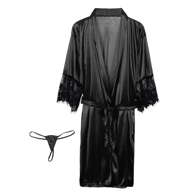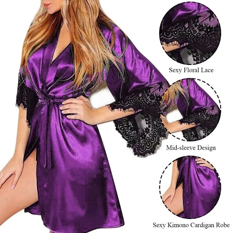 Ночная рубашка женская кружевная атласная, пикантная Ночная сорочка с V-образным вырезом, Ночная Сорочка свободного покроя с завязкой, размера плюс халат, 2021