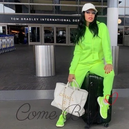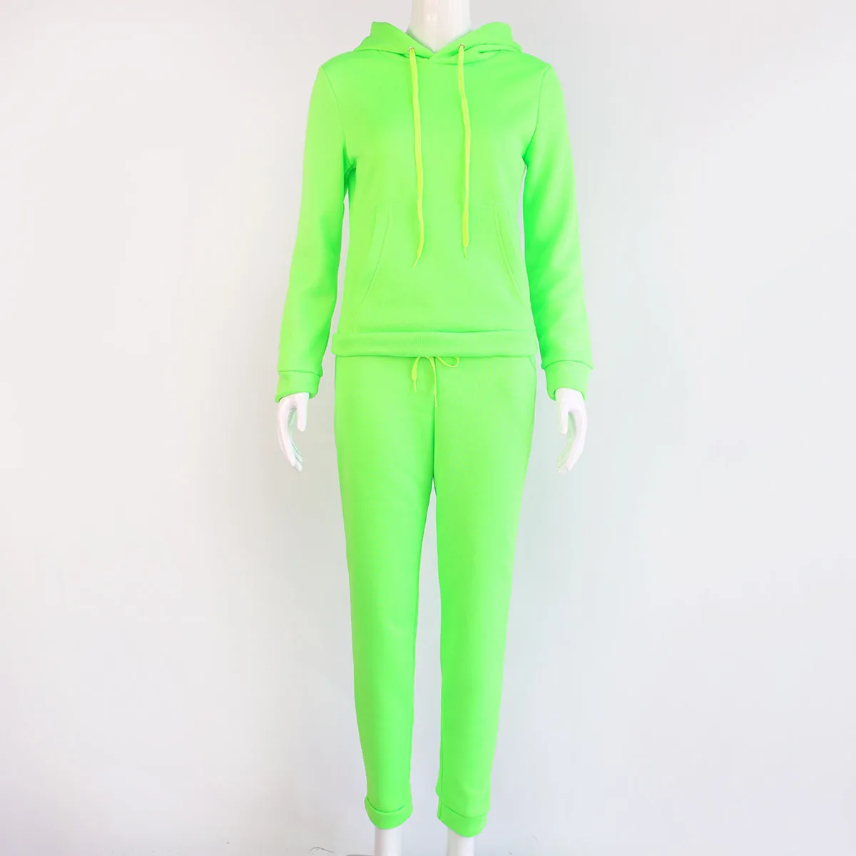 Женская Повседневная неоновая зеленая одежда, толстовка и брюки, комплект из двух предметов, розовый спортивный костюм с длинным рукавом, спортивные костюмы для отдыха и фитнеса