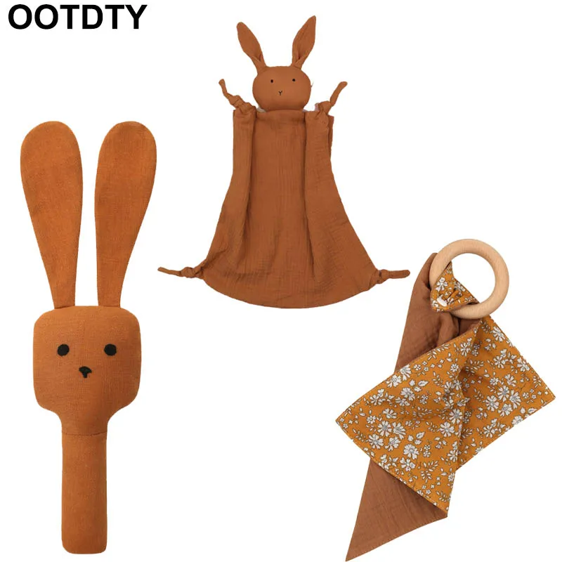 Колокольчики-погремушки плюшевые для младенцев, 2 шт., полотенце с кроликом