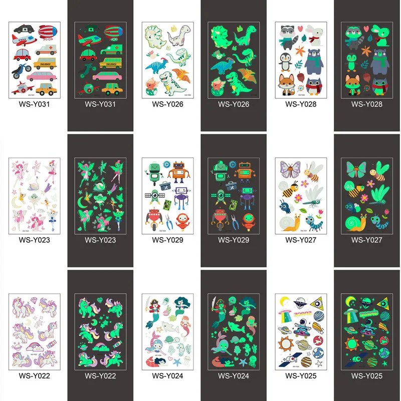 Тату-наклейки светящиеся для детей, временная поддельная светящаяся...
