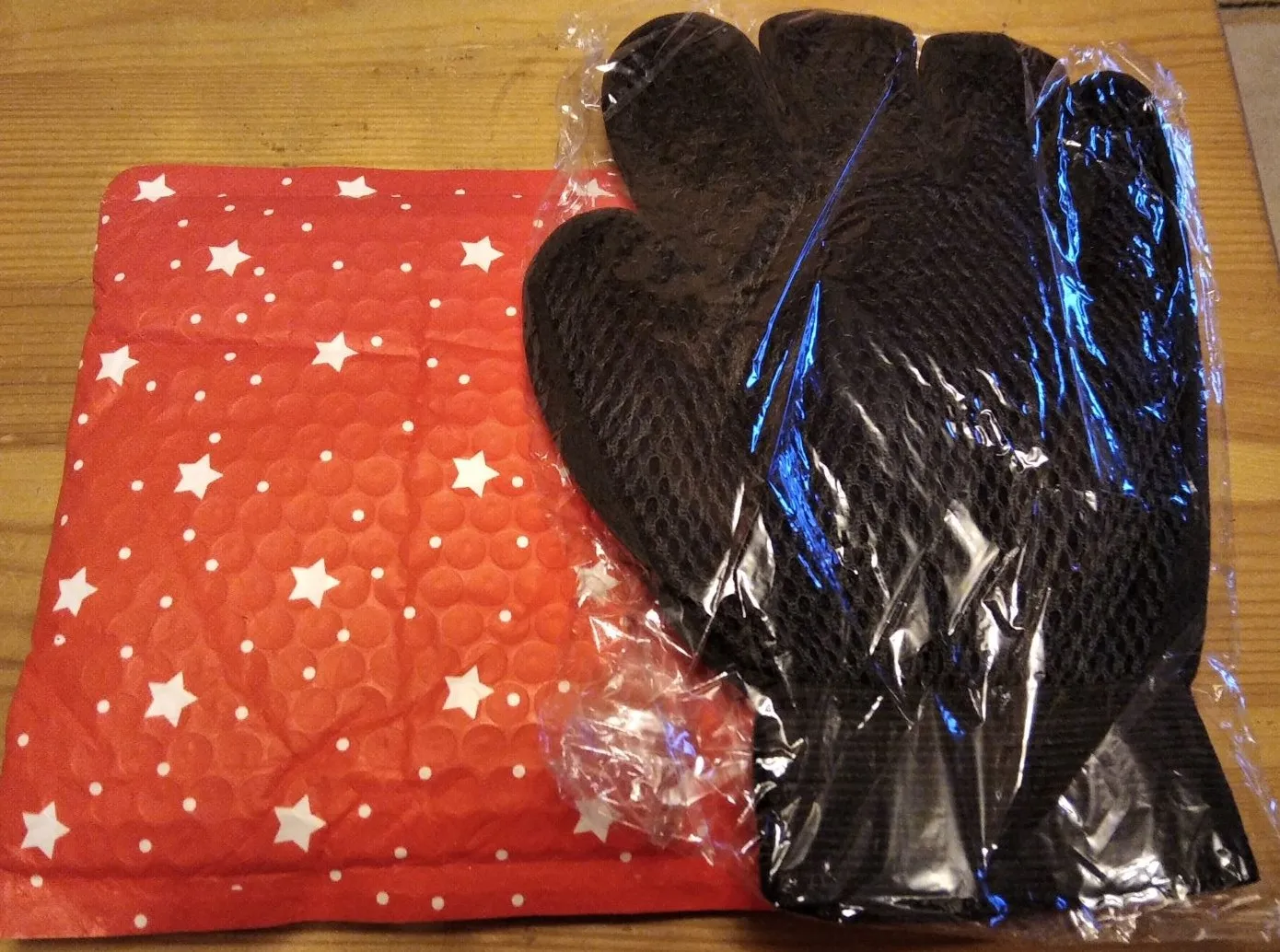 Доставка в Москву за 65 дней - очень долго. Номер не отслеживался. Упаковка великолепная для такого товара как рукавица для причесывания животных. Классный почтовый пакет с пупыркой, непонятно зачем, но это очень хорошо. Рукавица хорошая, описанию соответствует, жене очень нравится.