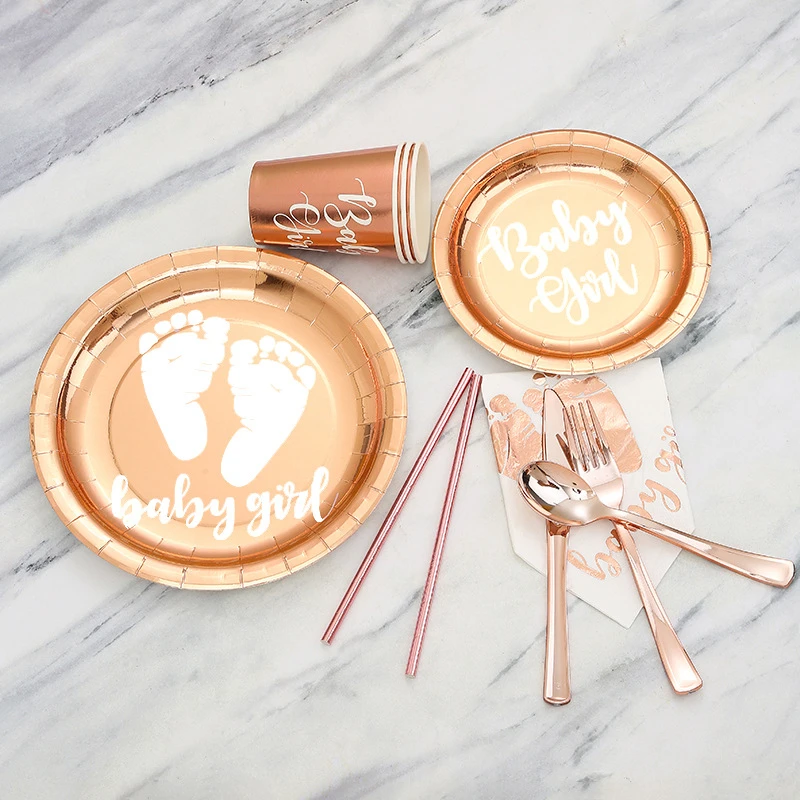 Одноразовая посуда для вечеринки, для девочек, Роза бумажные золотистые тарелки