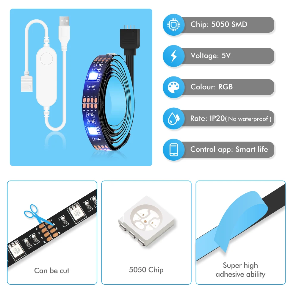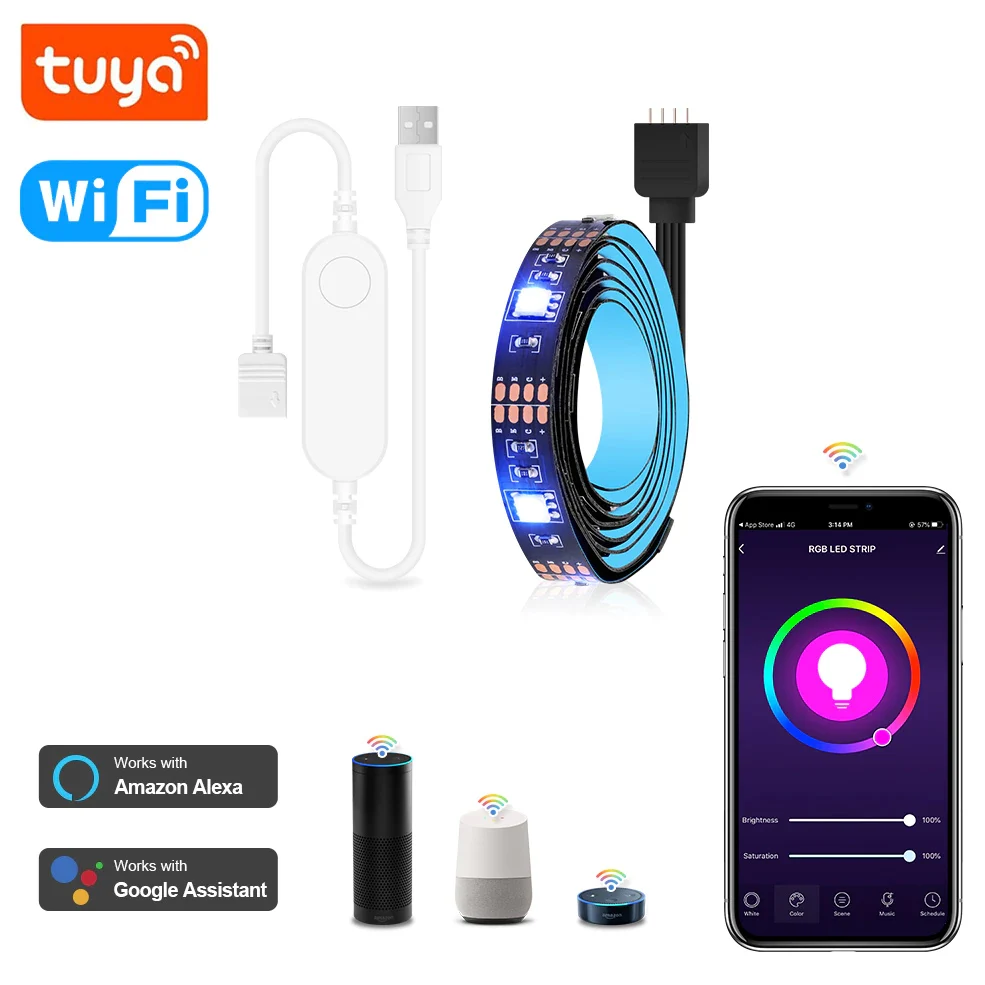 Светодиодная лента Tuya с дистанционным управлением, USB, Wi-Fi, 5 ...