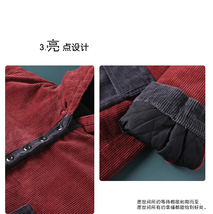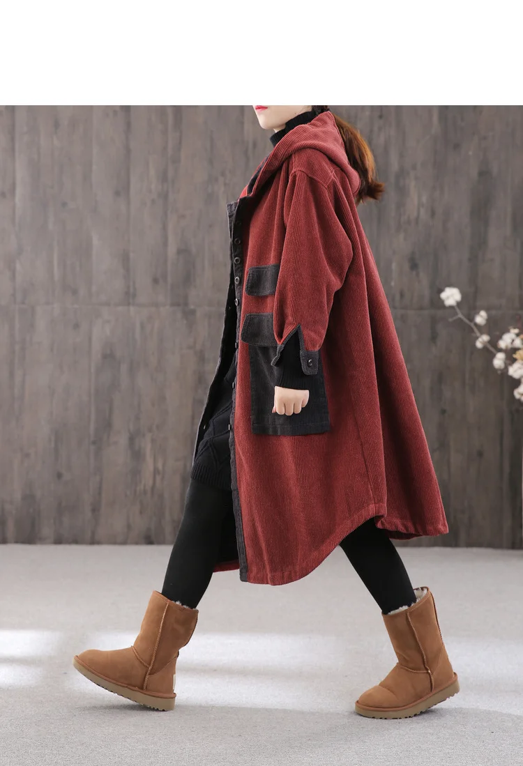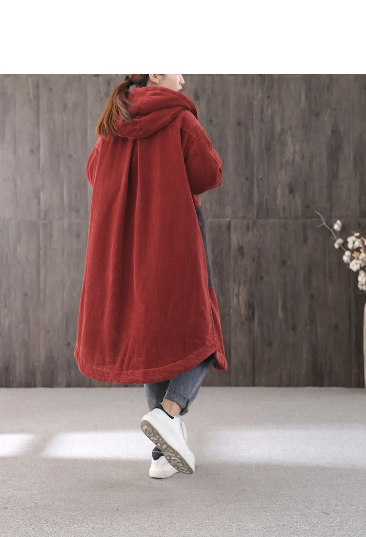 Женские винтажные вельветовые парки, теплая Лоскутная цветная одежда на пуговицах с карманами, новинка 2022, зимние пальто с капюшоном, плотная женская верхняя одежда